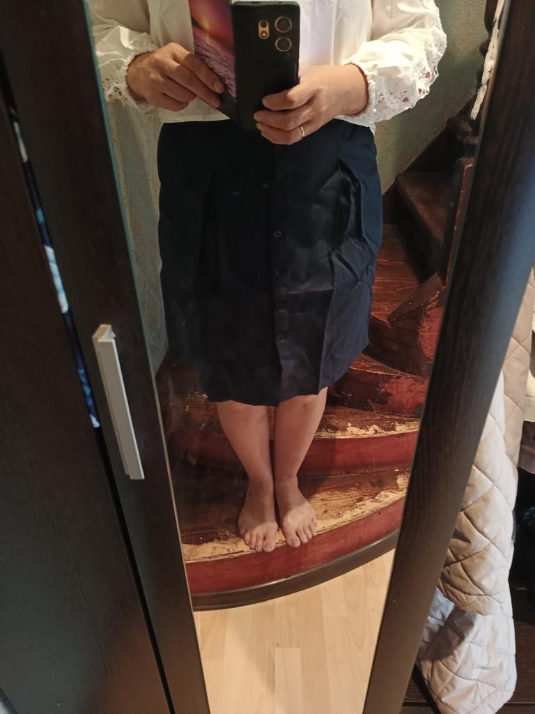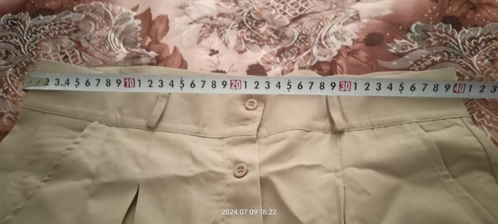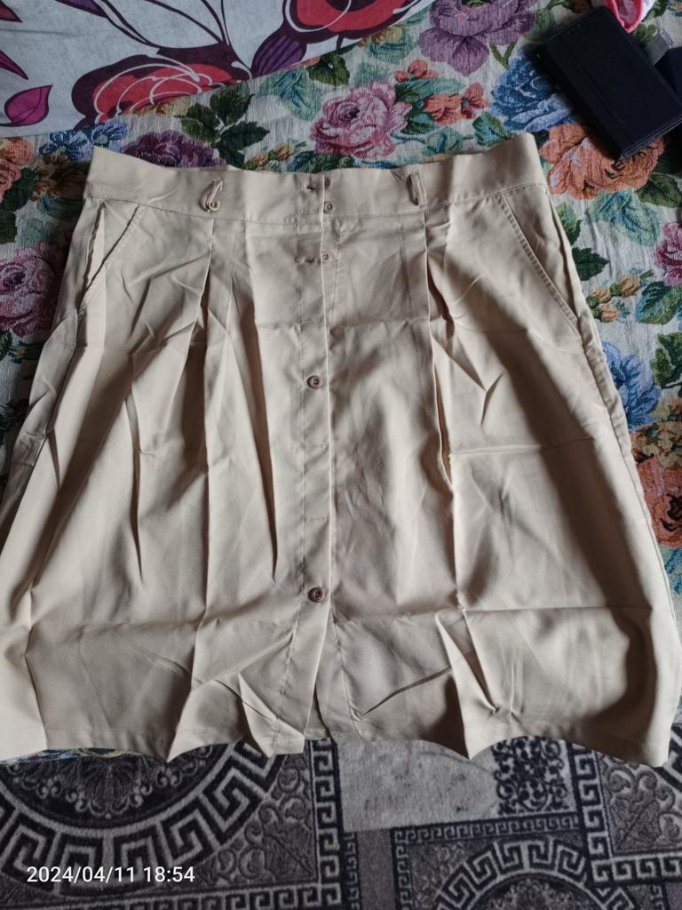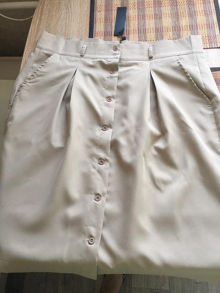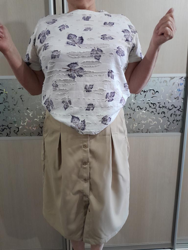 The skirt is adorable! I took 5XL, waist 106 cm. The fabric is light, similar to daddy. The product looks great! The style is simple and comfortable. There are pockets. It's just SUPER for the summer!