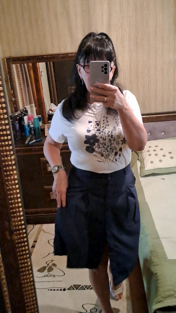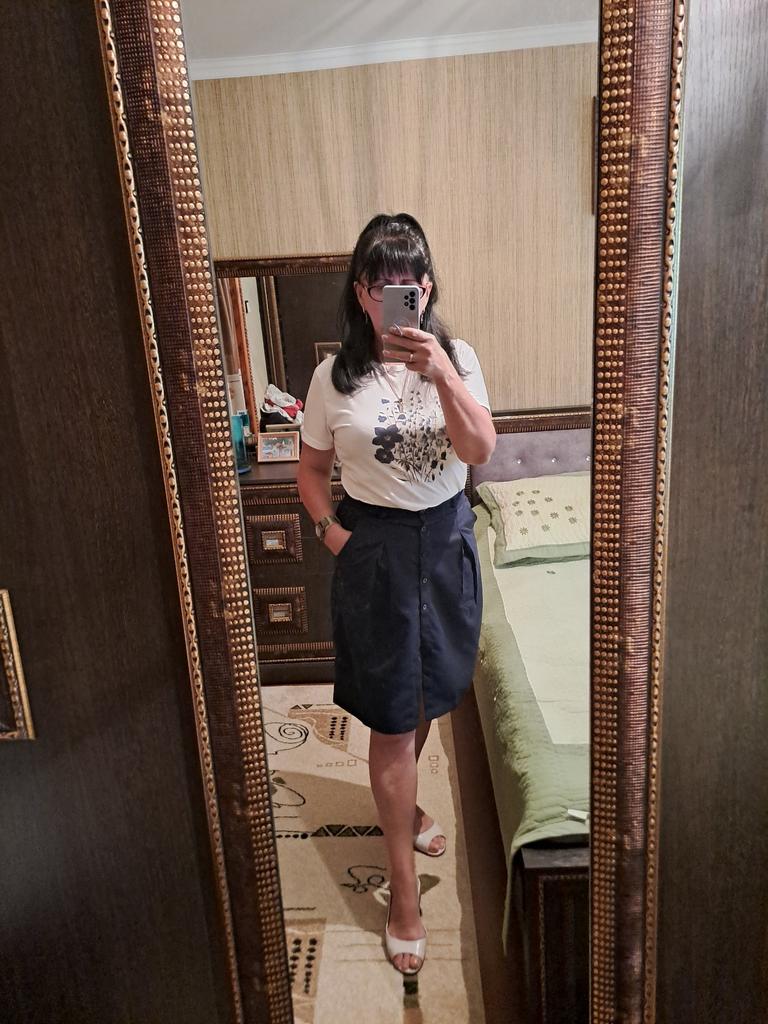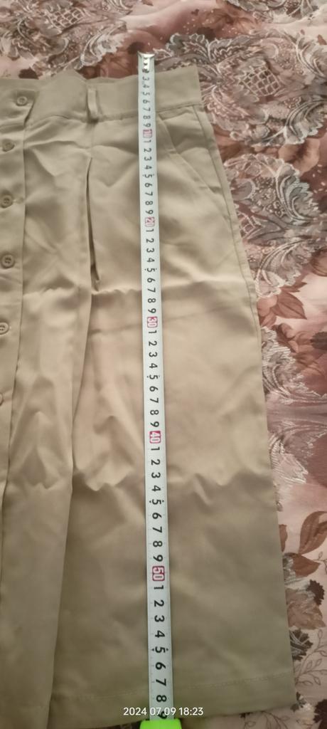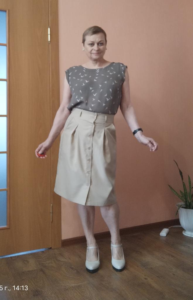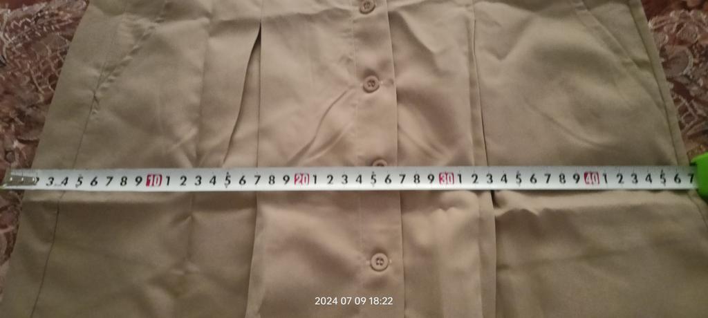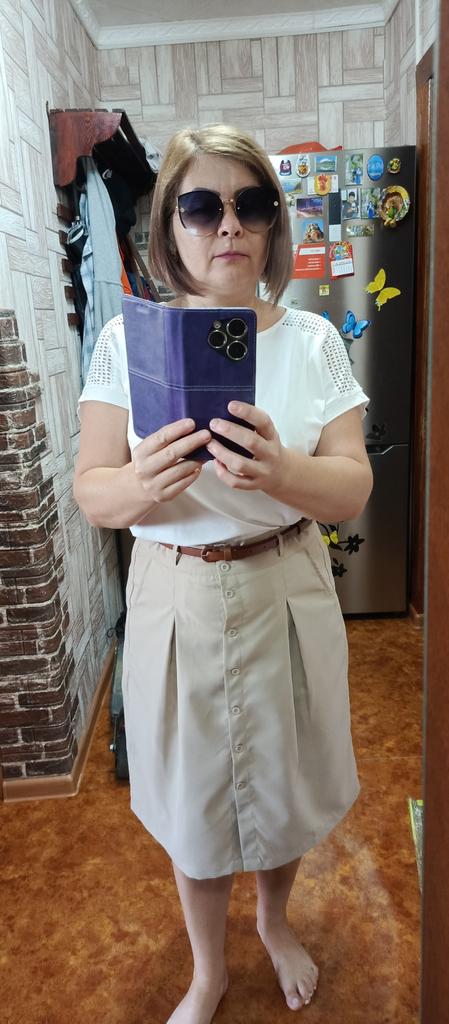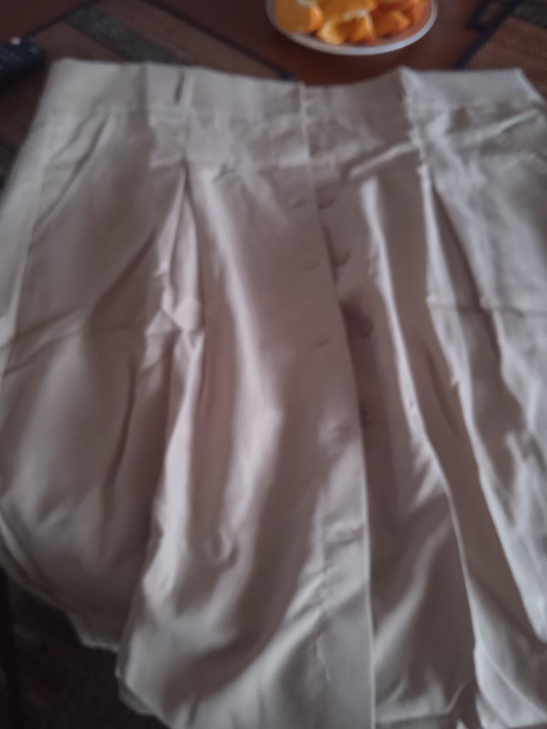 The skirt is adorable! I took 5XL, waist 106 cm. The fabric is light, similar to daddy. The product looks great! The style is simple and comfortable. There are pockets. It's just SUPER for the summer!
