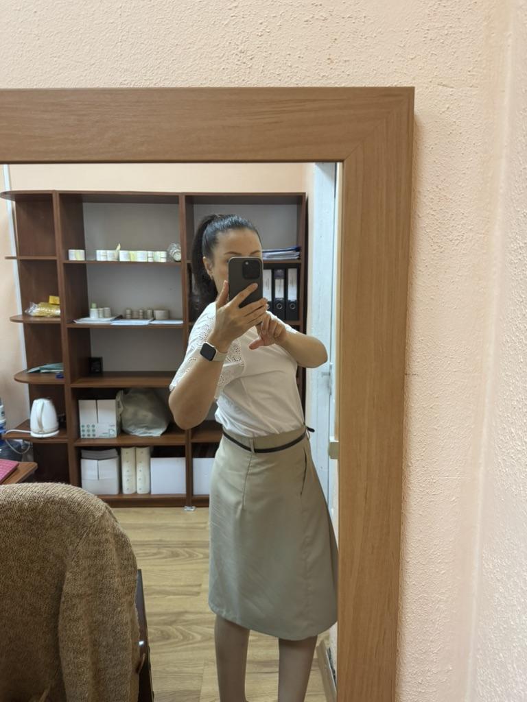 Exact size. Girls, when you buy, look at the size chart on the website. I would never have taken 5ХХХХХ for myself, but according to the sizes on the website it was right on target. Wonderful skirt