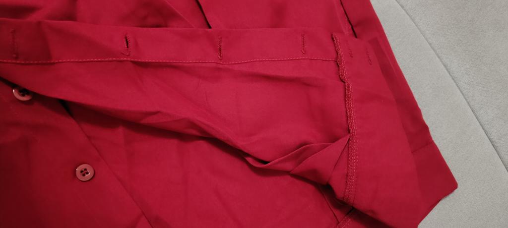 Doesn't match the size chart by much. Dimensions in the photo. The quality is good, thin material, translucent. The style is interesting, the pockets, the seams are even. I will contact support.