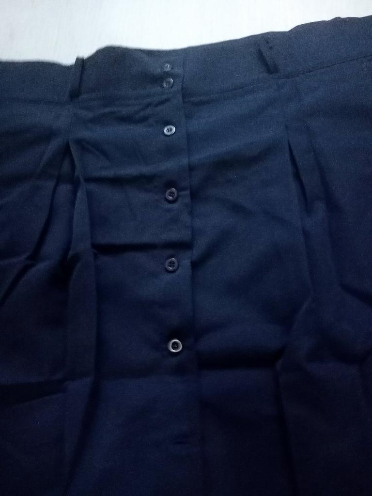 The length of the skirt is different. One half is 1.5 cm longer than the other. It is necessary to alter the buttons and equalize the length.