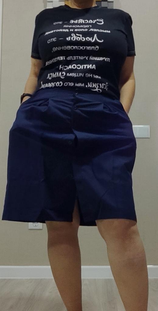 The skirt is generally good, if the sizes matched. In the description XXXL - waist 94, length 61, hips 124; in reality - waist 91 (with a stretch!), length 60, hips 124 - YES, BUT THIS IS IF YOU PLACE THE FOLDS, which as I understand, even on the model there are folds, and not a SKIRT SMOOTHED ON THE Tummy. PS: half the price was returned.