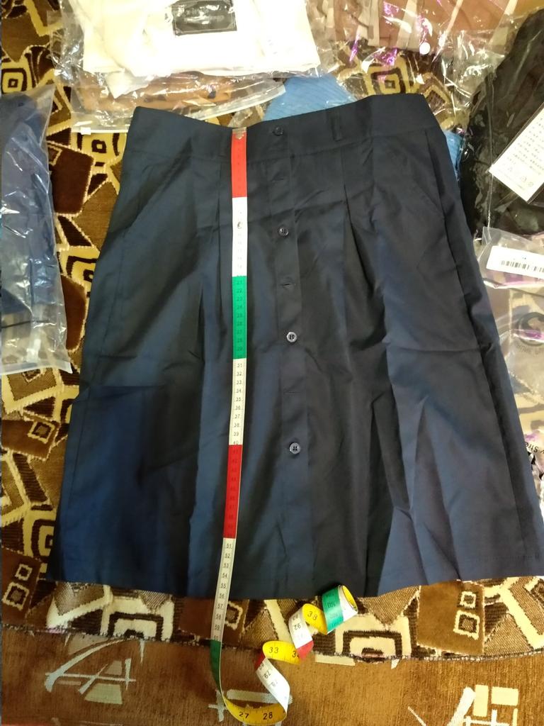 XXL The fit is bad, the waist is wide, short for my height of 157, the length of the skirt to the middle of the knee is 57 cm. Sewn qualitatively, the fabric is thin. Ordered on February 19, arrived on April 1. Unsuccessful purchase. All three products in the parcel do not meet expectations.