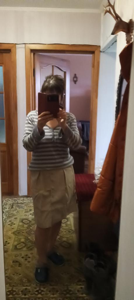 What I was most looking forward to was the skirt. Xxxl did not enter at all, plus two palms for sure. I sort of chose it according to the size chart. Well, that's not luck. The fabric is thin and thin. The buttons are small, not interesting, like on a sweatshirt. Looks much better in the photo