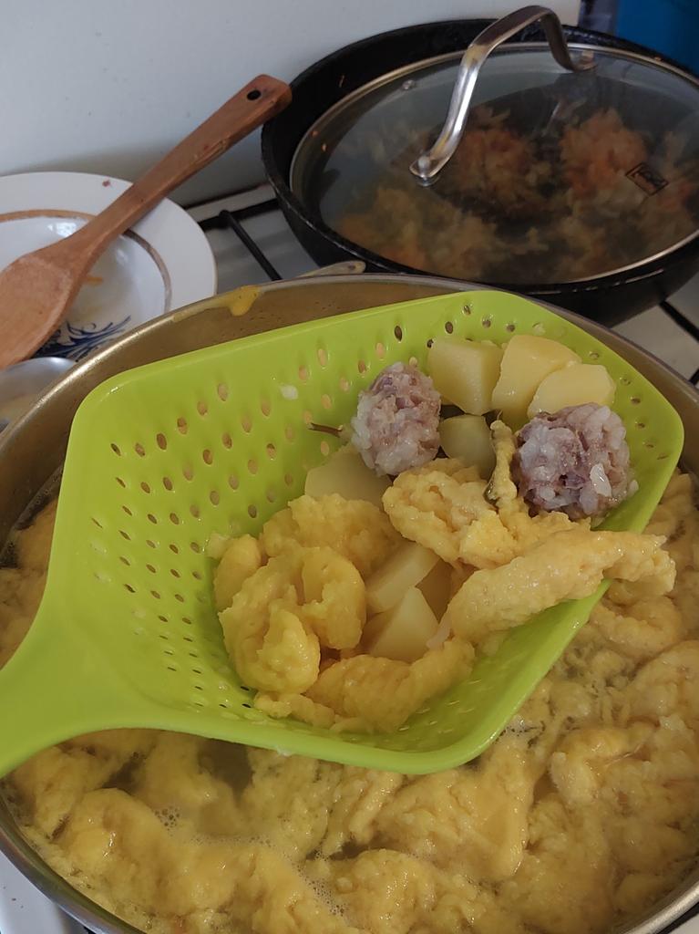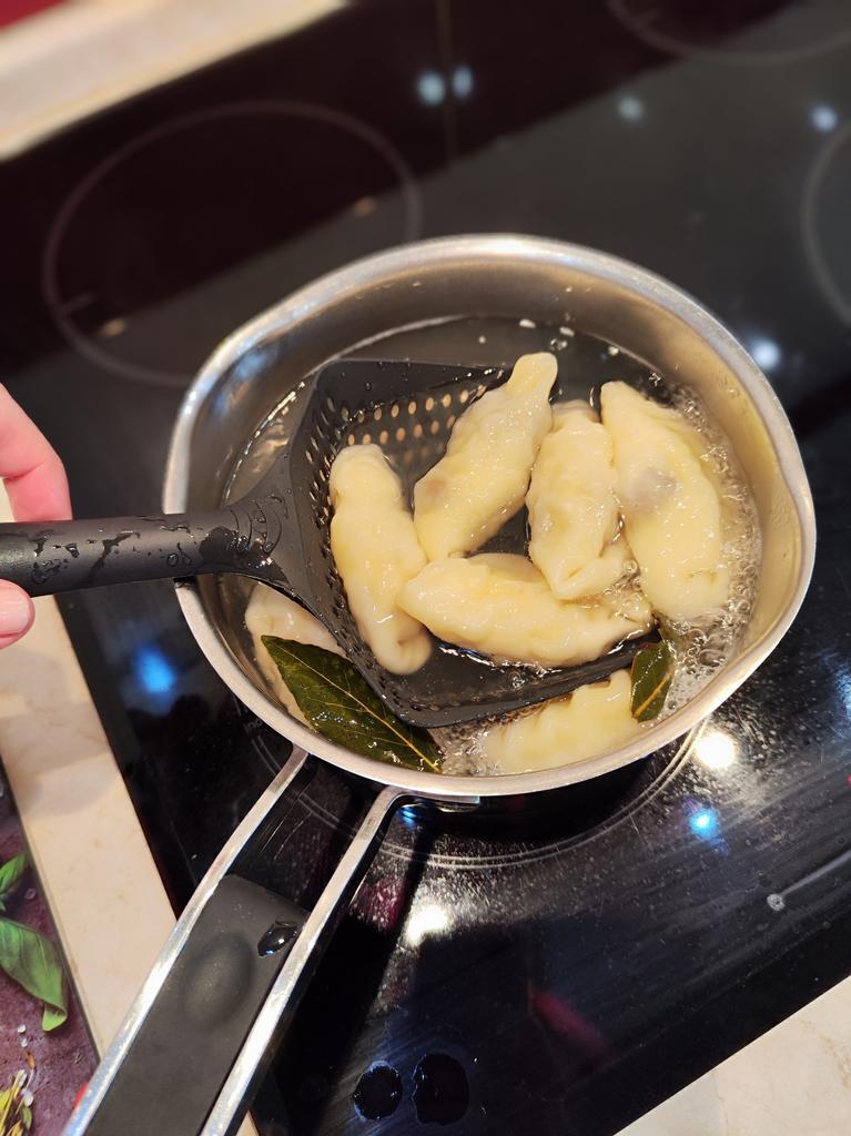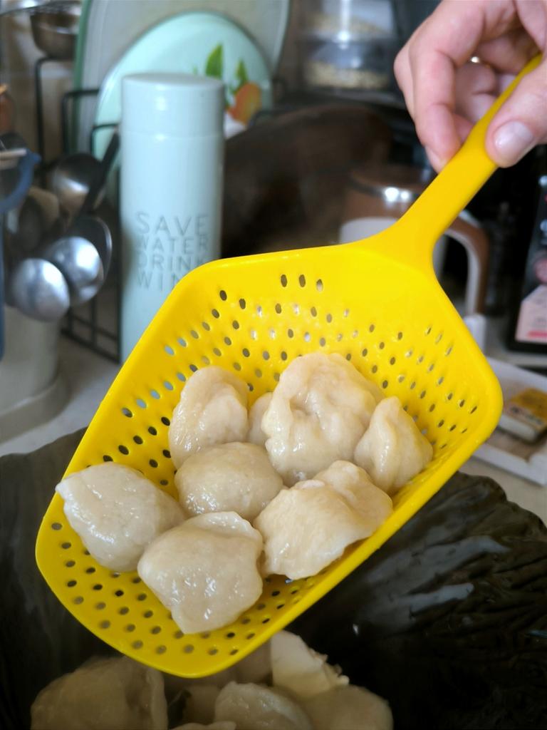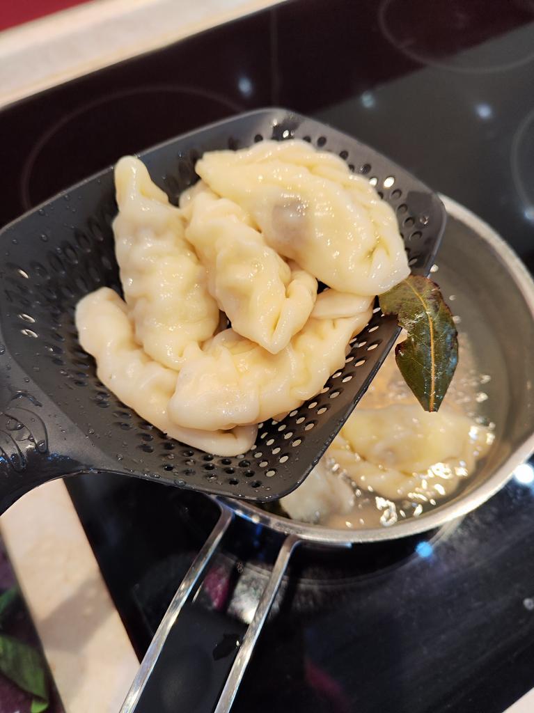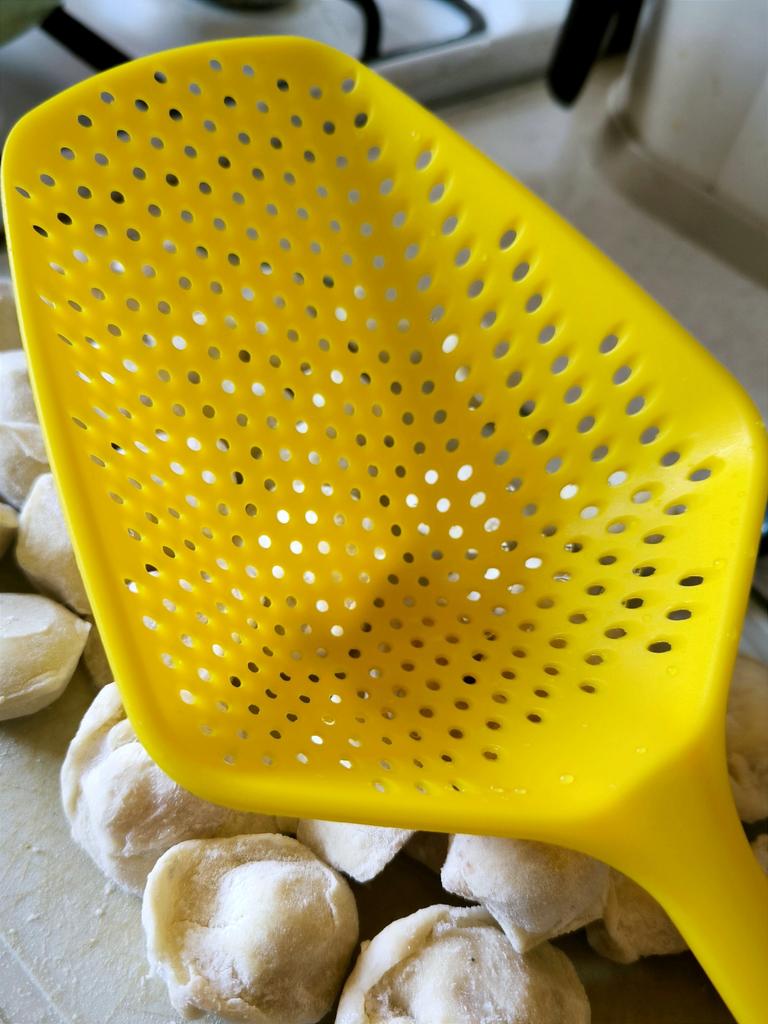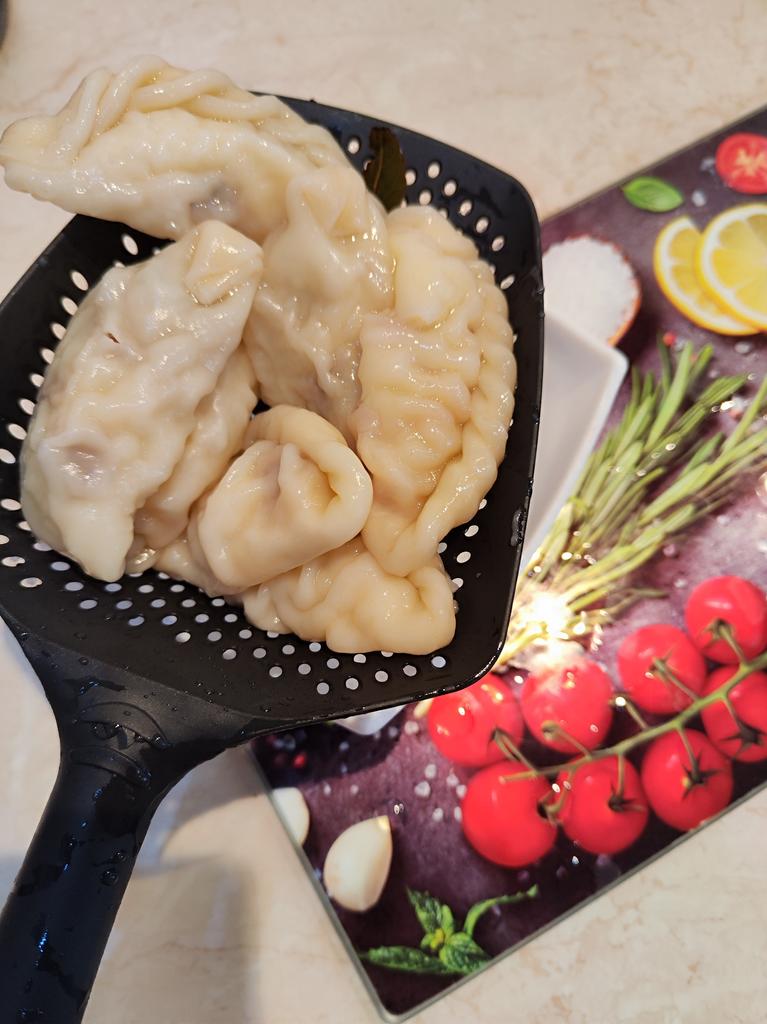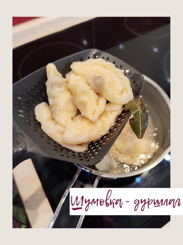 A large spatula, a colander. I have it in black. Does not bend. It is convenient to take dumplings, dumplings, pasta out of the pot. I didn't expect it to be so big))) It did not melt in boiling water, so I can safely say that it corresponds to the seller's description. A great kitchen tool.