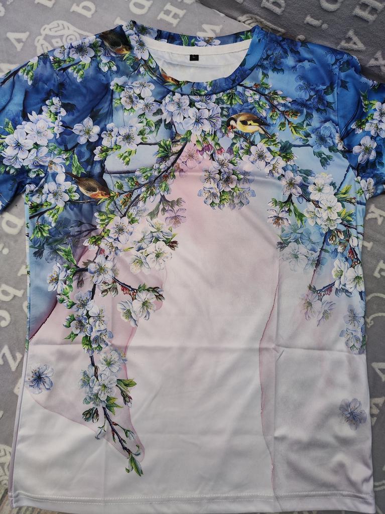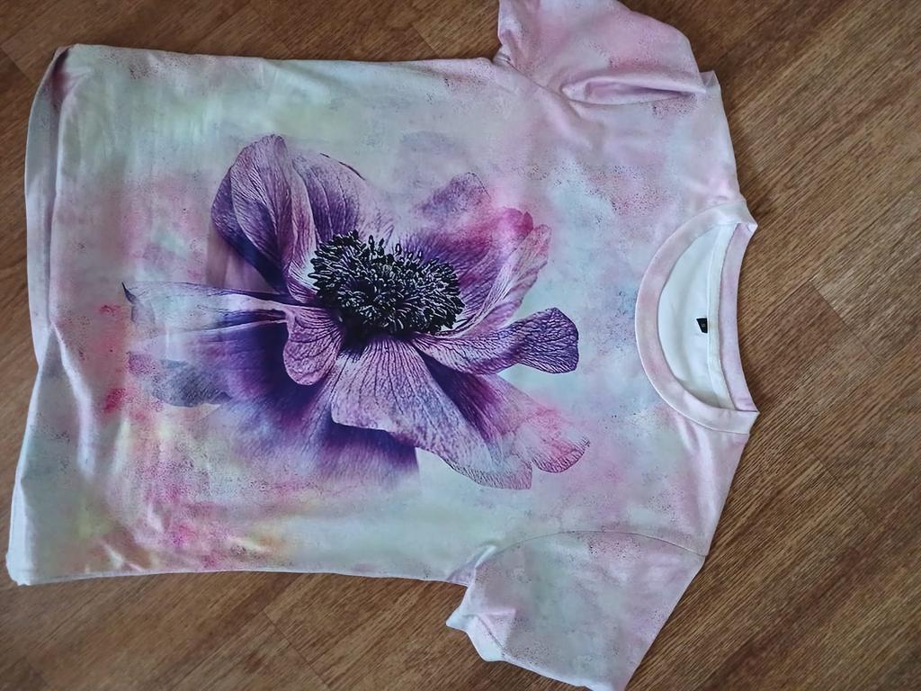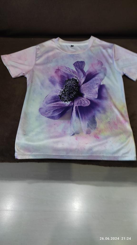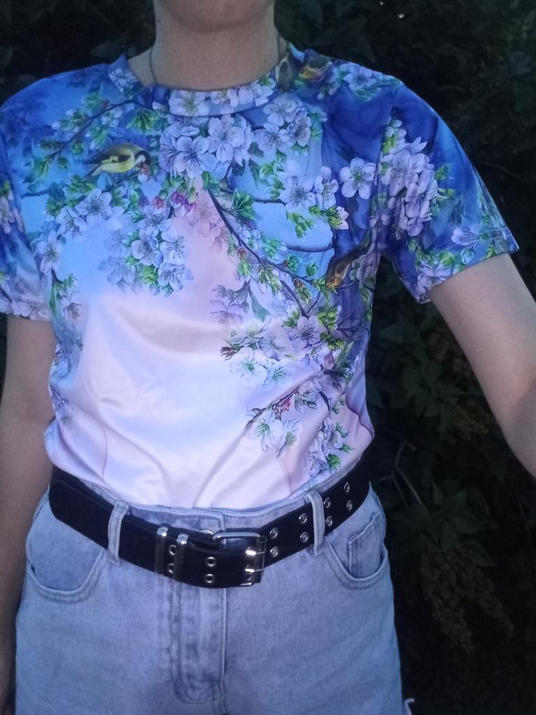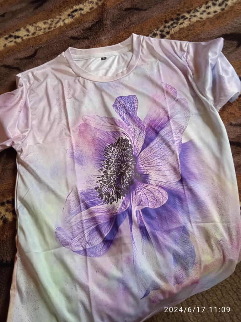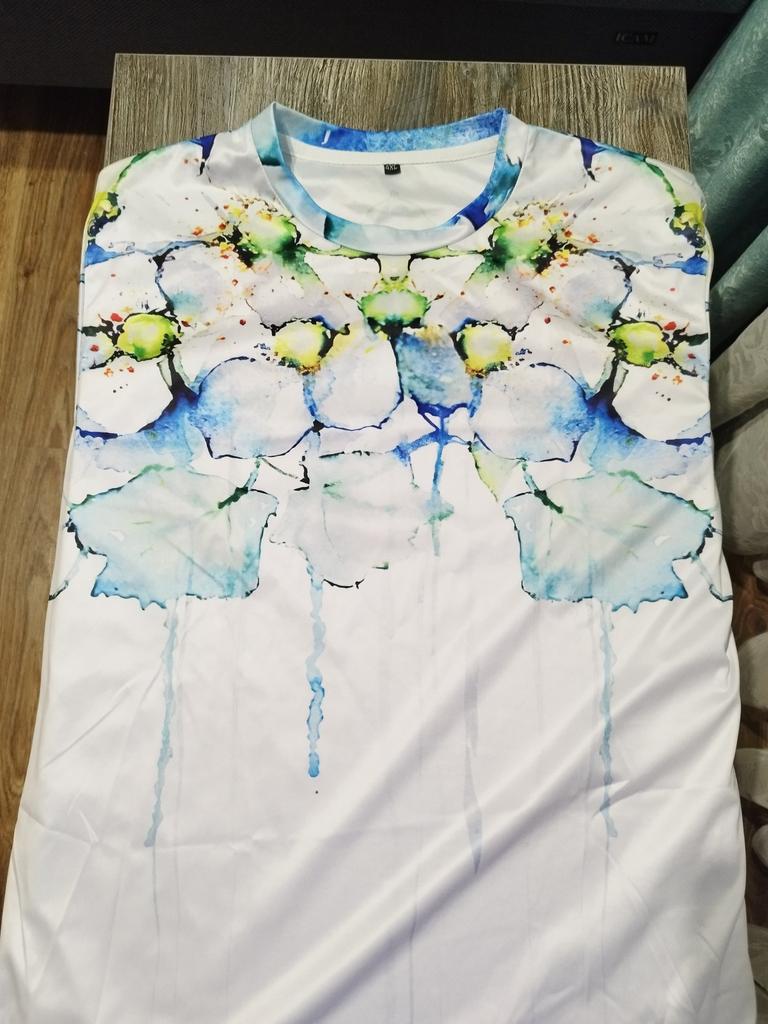 T-shirt with a pattern exactly as in the photo. The material is very light, I would like it to be a little thicker and heavier.