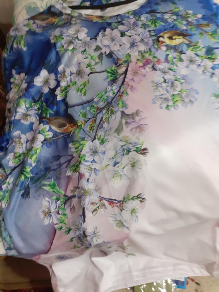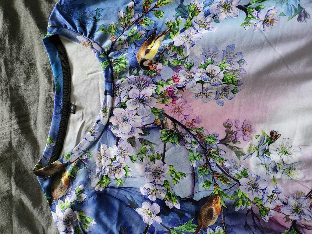 The print is beautiful, but the material is just terrible thick polyester, you can’t walk around in such clothes, you can’t buy all the clothes on Joom (you can’t return anything, technical support doesn’t respond, consider that you’re buying things at a tri-doriya).