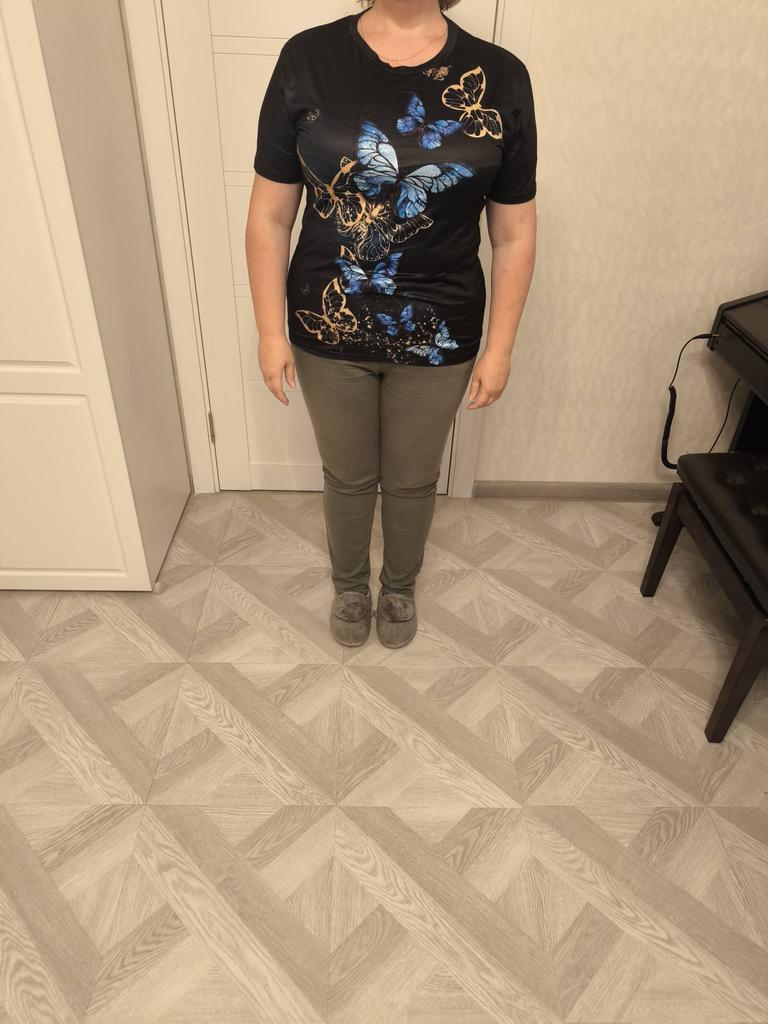 The T-shirt arrived larger than needed, the quality is so-so. Of the 4 T-shirts I ordered, only 1 was more or less, but not this one. Don't waste your money. I haven't ordered from Joom for 100 years and I won't do it for another 100 years.