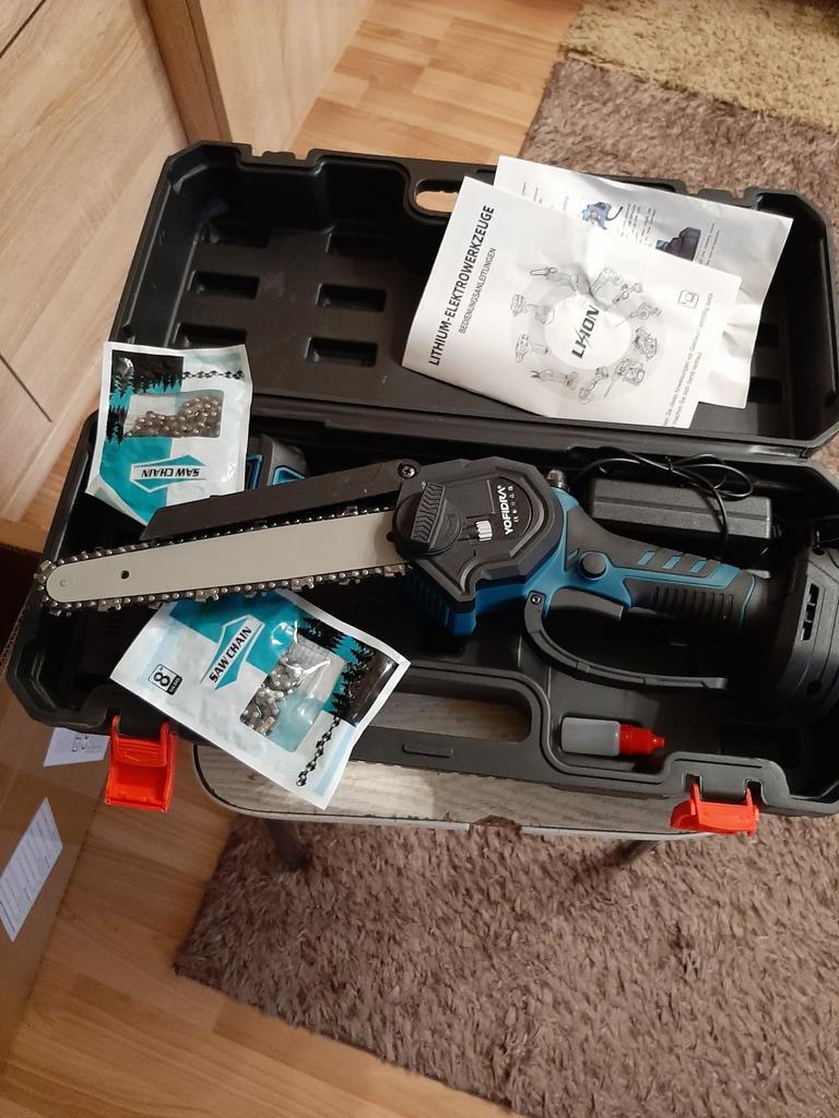 The chain is sharpened and doesn’t lead well to the left, but the battery would be better. An additional chain would be nice . And so for small garden work it will do