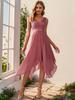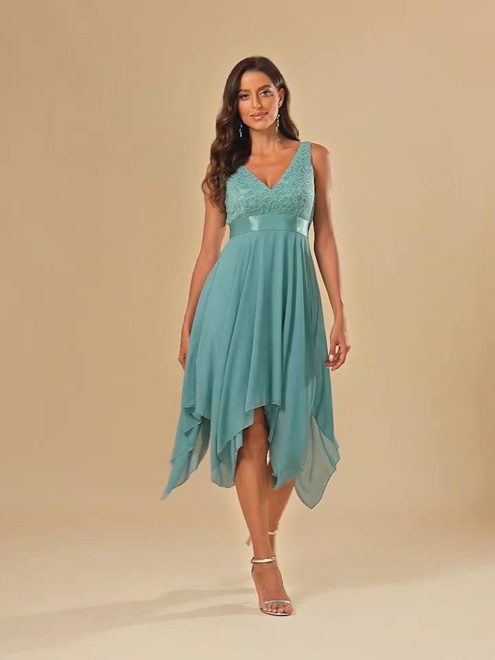 Ever-Pretty Women's Double V-Neck Empire Waist Lace Chiffon Asymmetrical Hem Prom Dresses