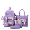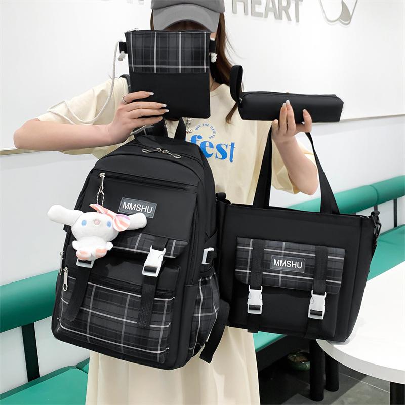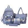 4pcs Elementary School Ultra Light Checkered BackpackWomen's Four Piece Oxford Wear-resistant SetHigh Capacity Backpacks for Middle School Students
