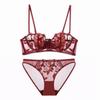 Women's Sexy Lingerie Rabbit Ears Cup Flower Embroidery Lace Underwear Soft Steel Ring Large Breasts Show Small Bra Set