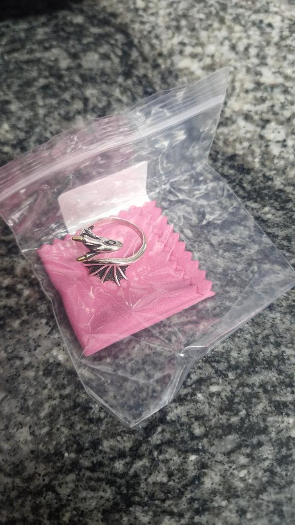The ring is cool. Thank you for the gift..a cloth for cleaning silver