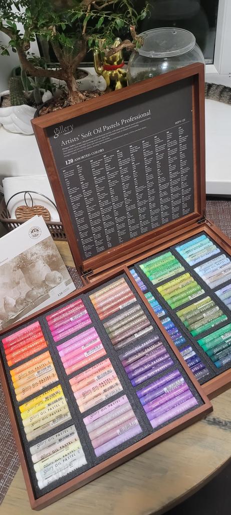 Magnificent set, simply royal! The color palette is beautiful. The smell of natural wax, no chemical odor is felt. The quality of the pastels is excellent. The box itself is a gift box.