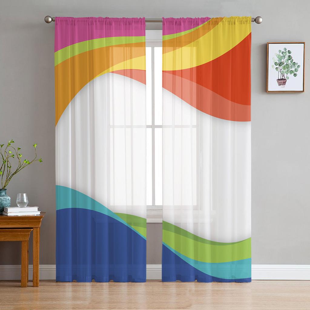Color Wave Illustration Tulle Curtains For Living Room Home Decor Window Curtain Kitchen Sheer Voile Curtain