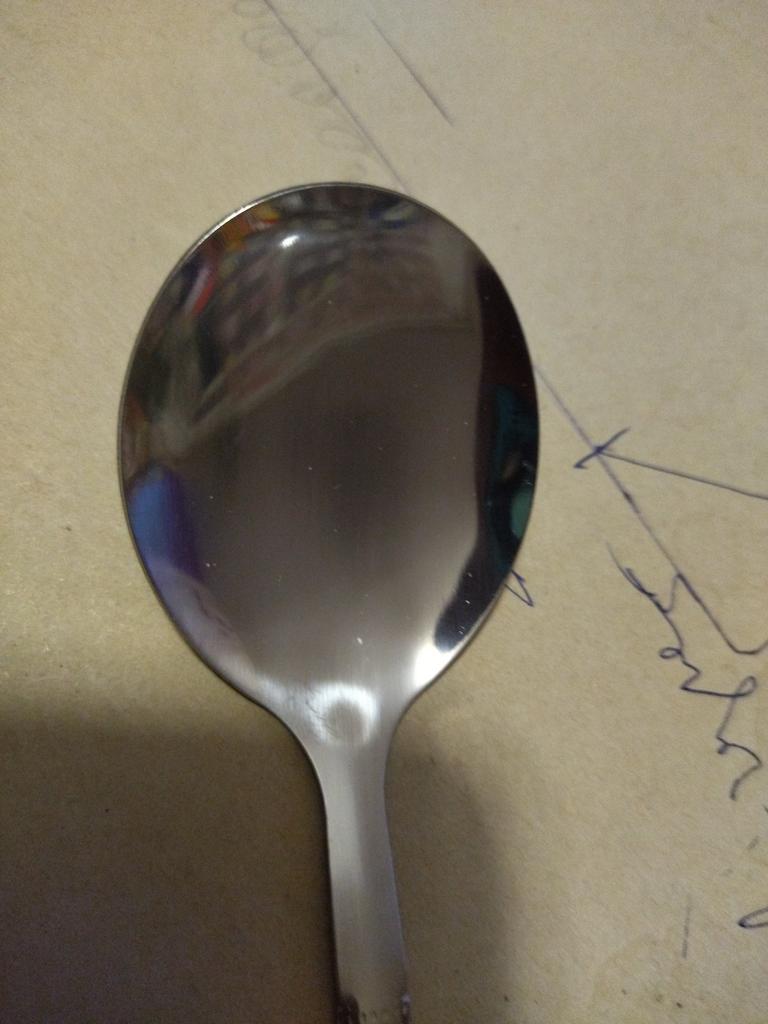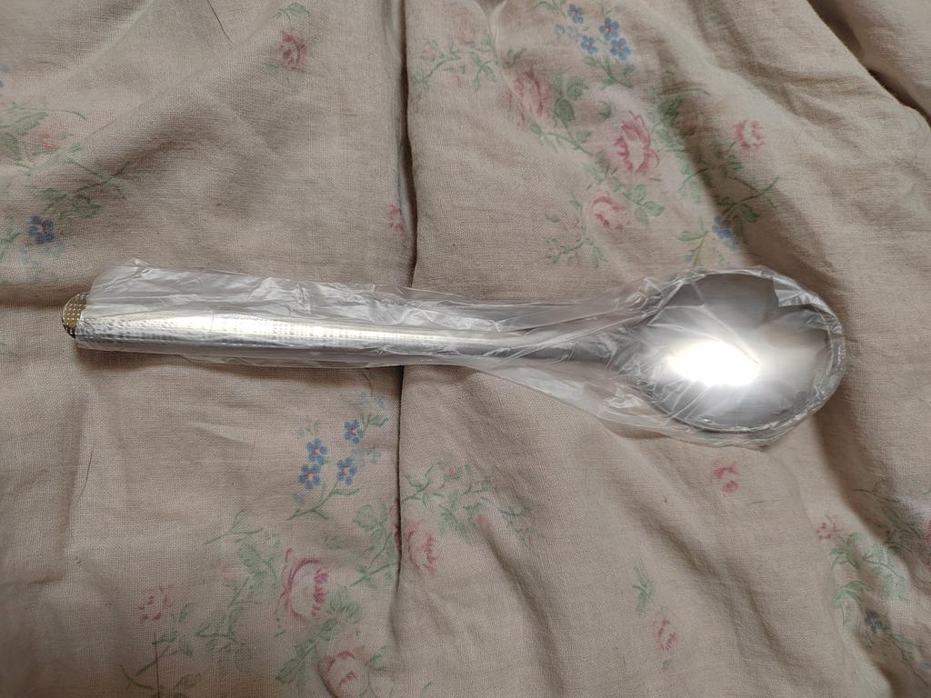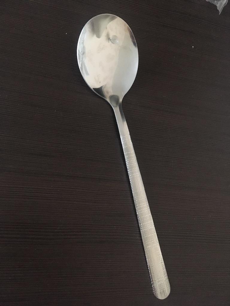 A regular thin table spoon with an elongated handle. I would like it to be bigger and wider