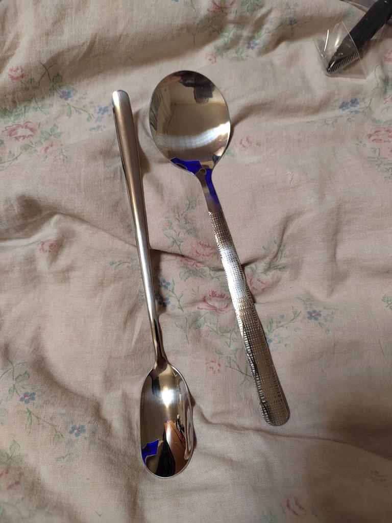 Spoons are great! I bought it in order to throw it in a box with tea, sugar, or coffee, so as not to collect them with a wet spoon, as family members like to do. The dessert spoon is a little too big for the cup. Therefore, it is unlikely that someone will take it out of the box to stir sugar. π But also convenient, because the handle is long. It is convenient to get out of a tall box