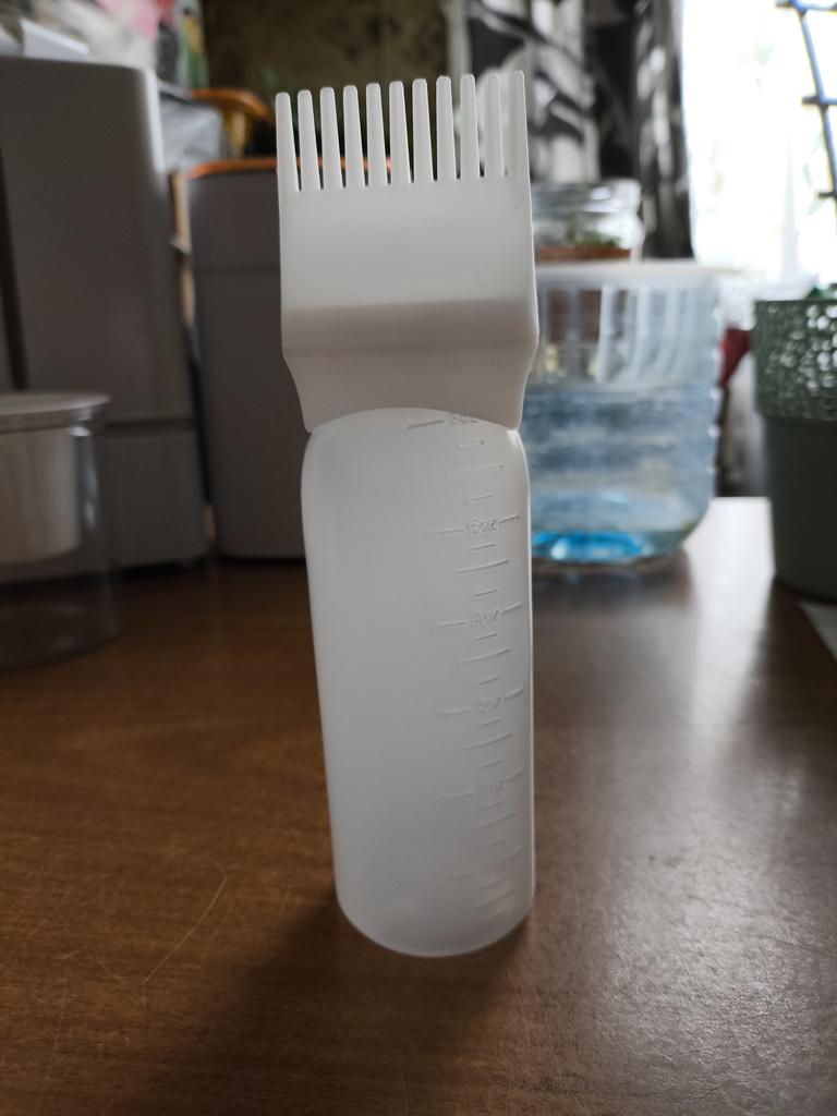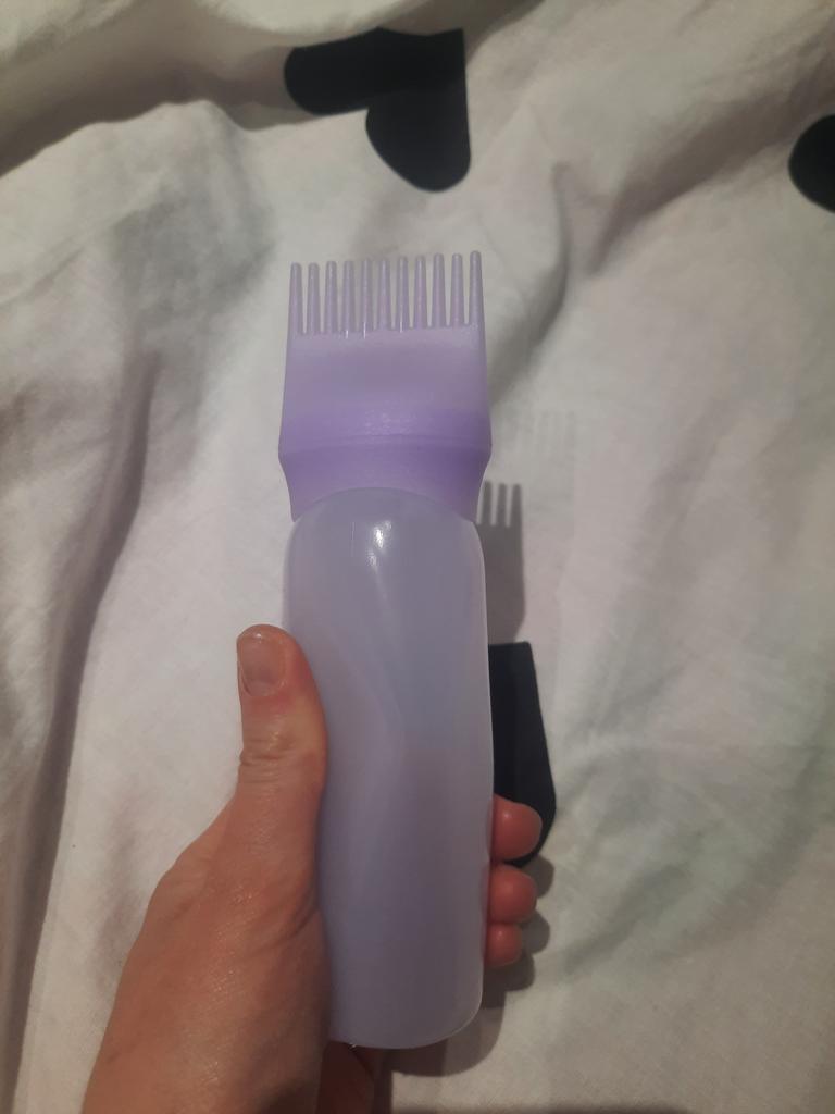 I took a bottle for oil, to apply it to the scalp. There are holes in the teeth