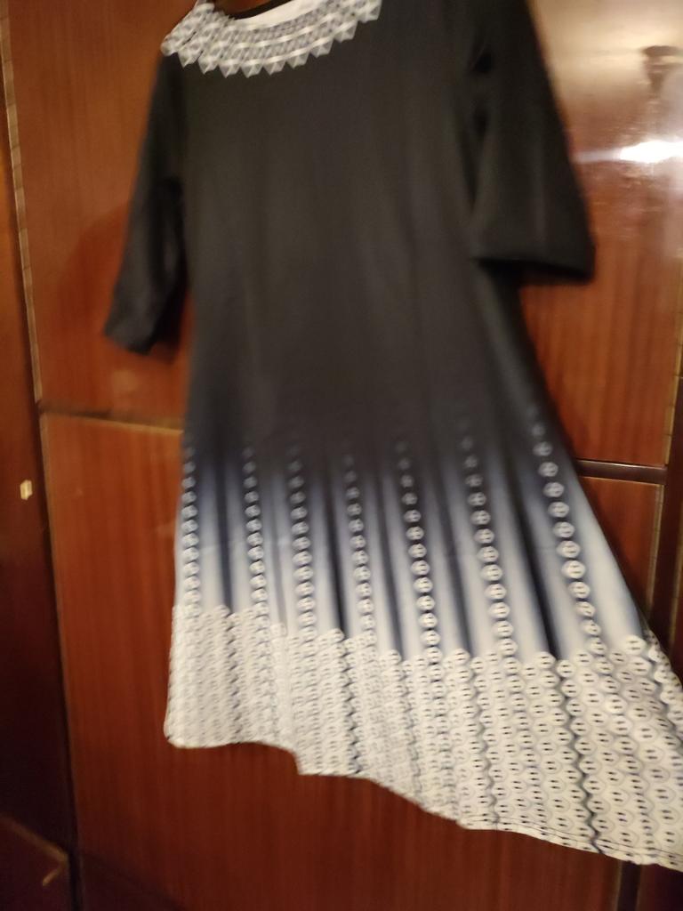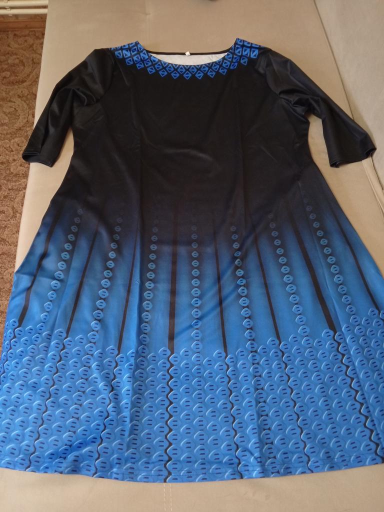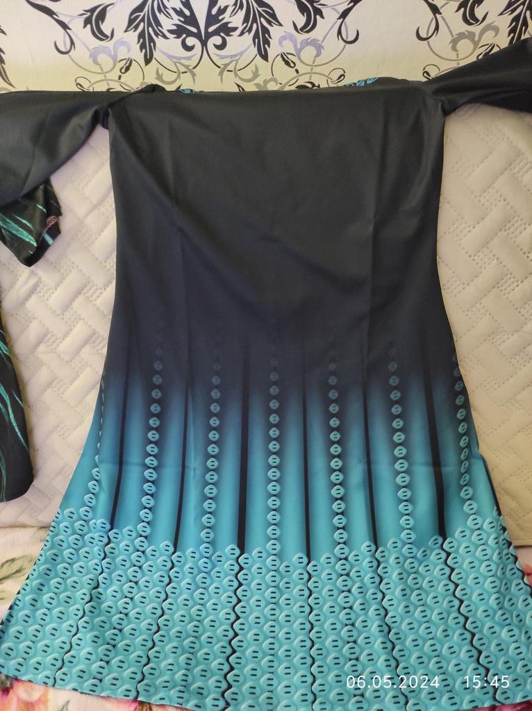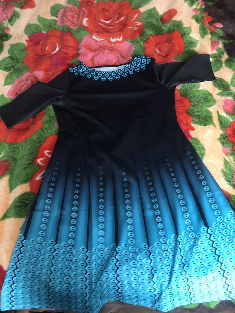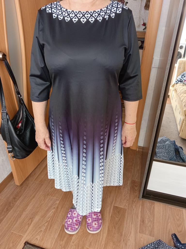 It looks rich in the photo, but in reality it's rather simple, because it doesn't match the advertised dress. A caricature of what is in the photo. In the photo, the pattern is brighter and larger, extending onto the sleeves, but in reality it's one disappointment.