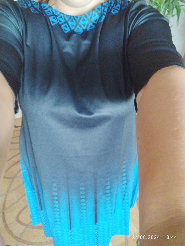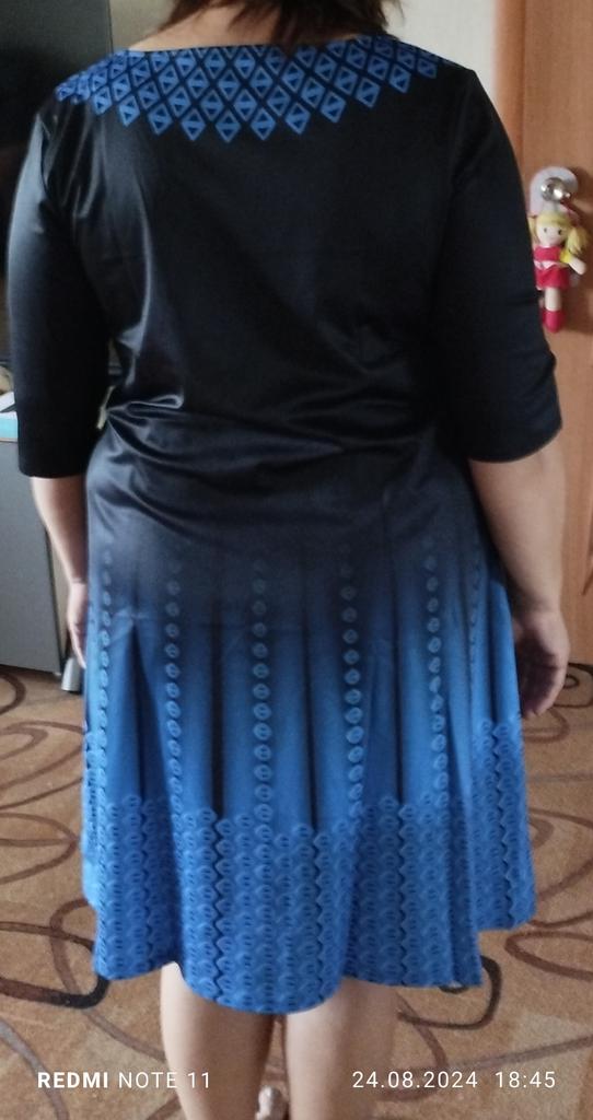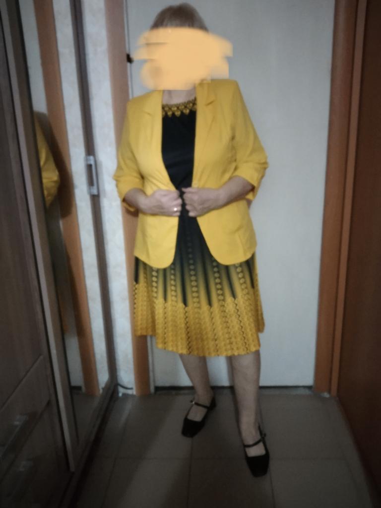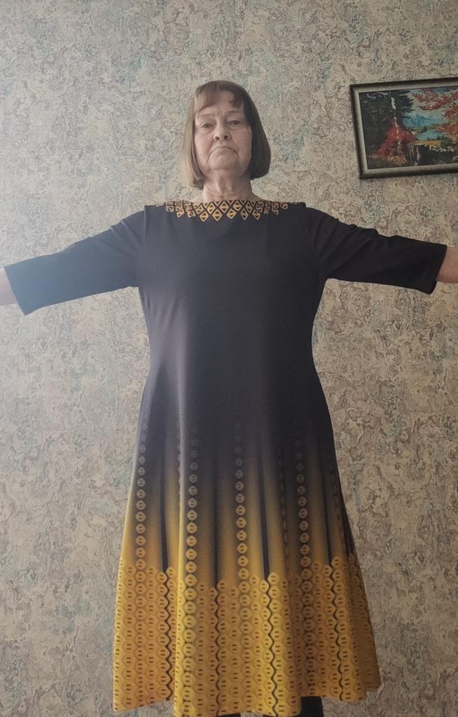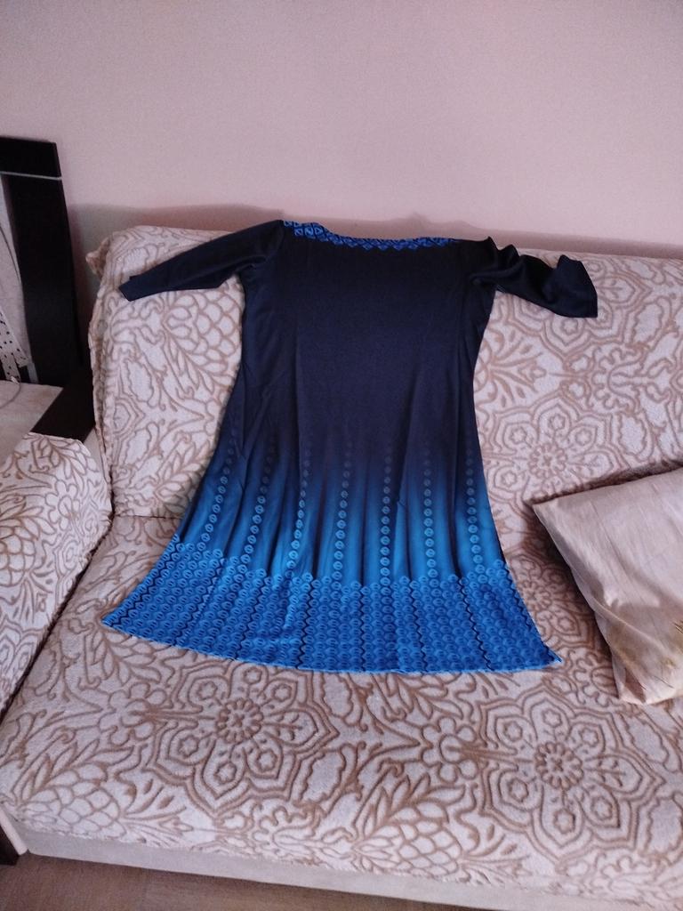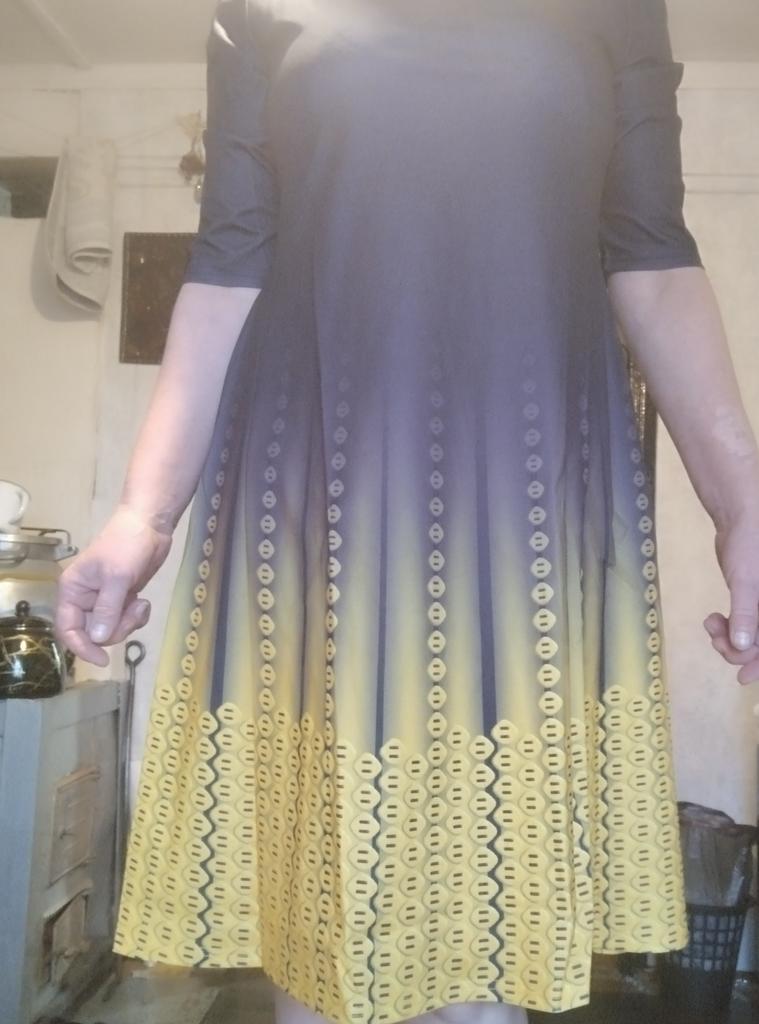 The cut of the dress does not match the picture (it is a straight cut), it's good that I took a size larger so that something similar would turn out. And the dress has two pockets, on both sides of the skirt.