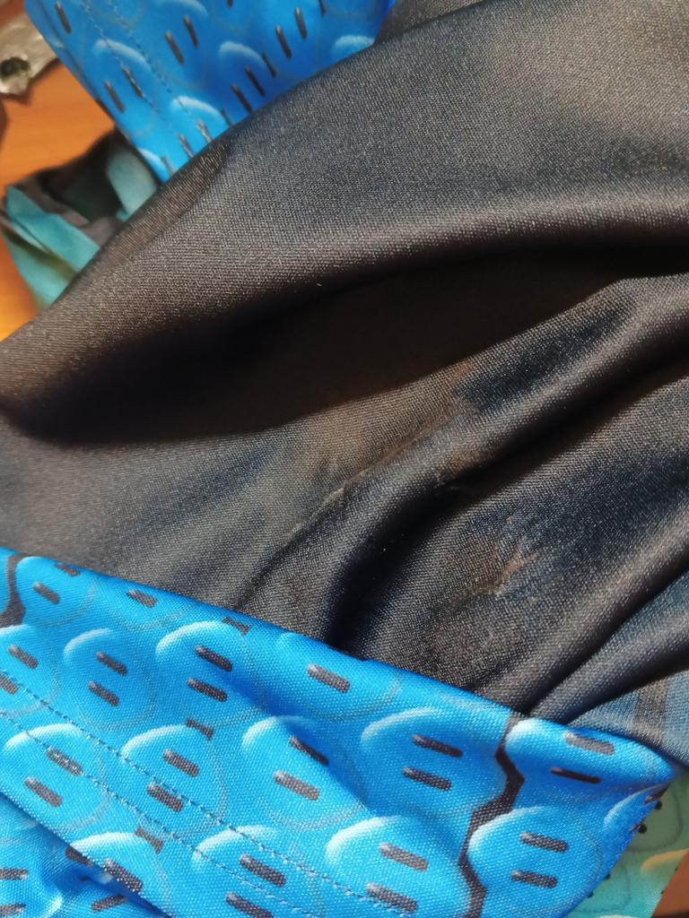 Collect all the bags into one. The bags with the dresses are damaged. There are spots with micro holes on the flesh at the place of the bag defect.. The color of the dress is much more faded than in the photo. There is NO bright finishing stripe because of which the product was taken. Washing did not help. The defect is in the most visible place