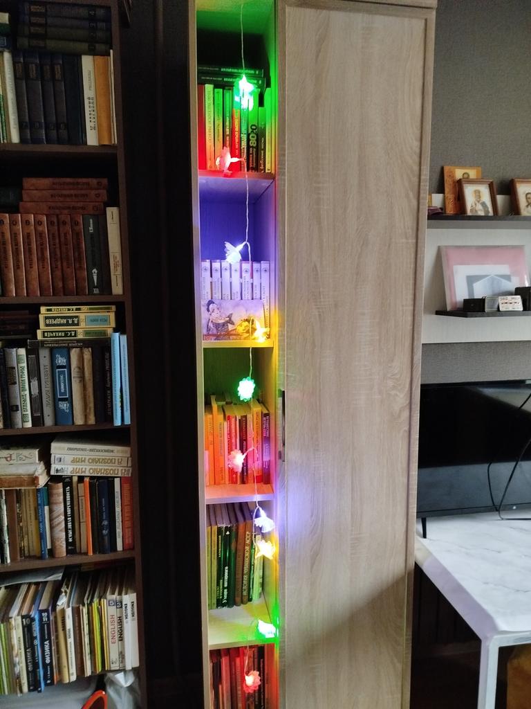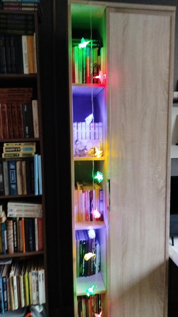 The grandson is simply delighted. He found batteries, hung them up in his corner. It looks simply wonderful. The colors don't change, they don't blink, but the lights of four colors simply burn, but beautifully.