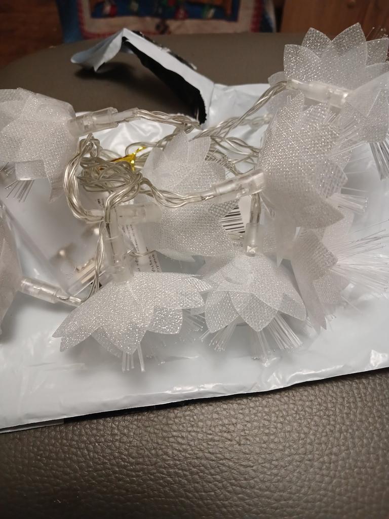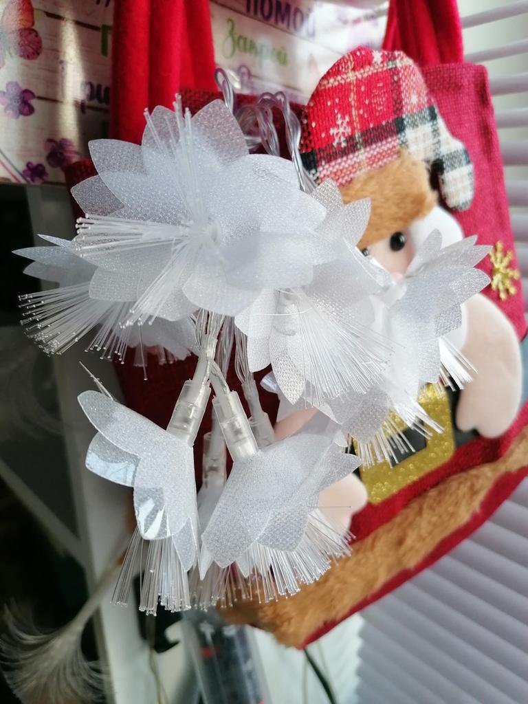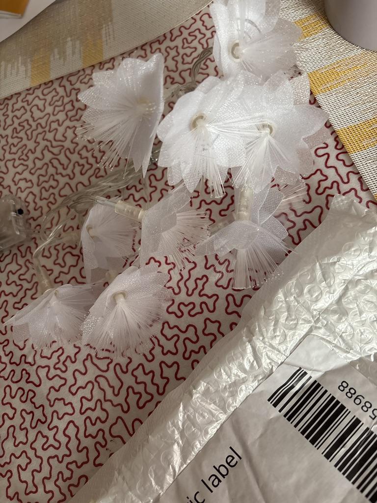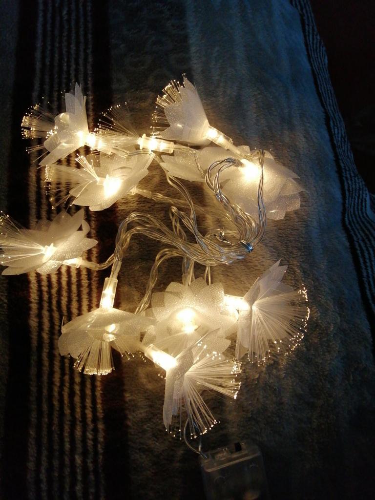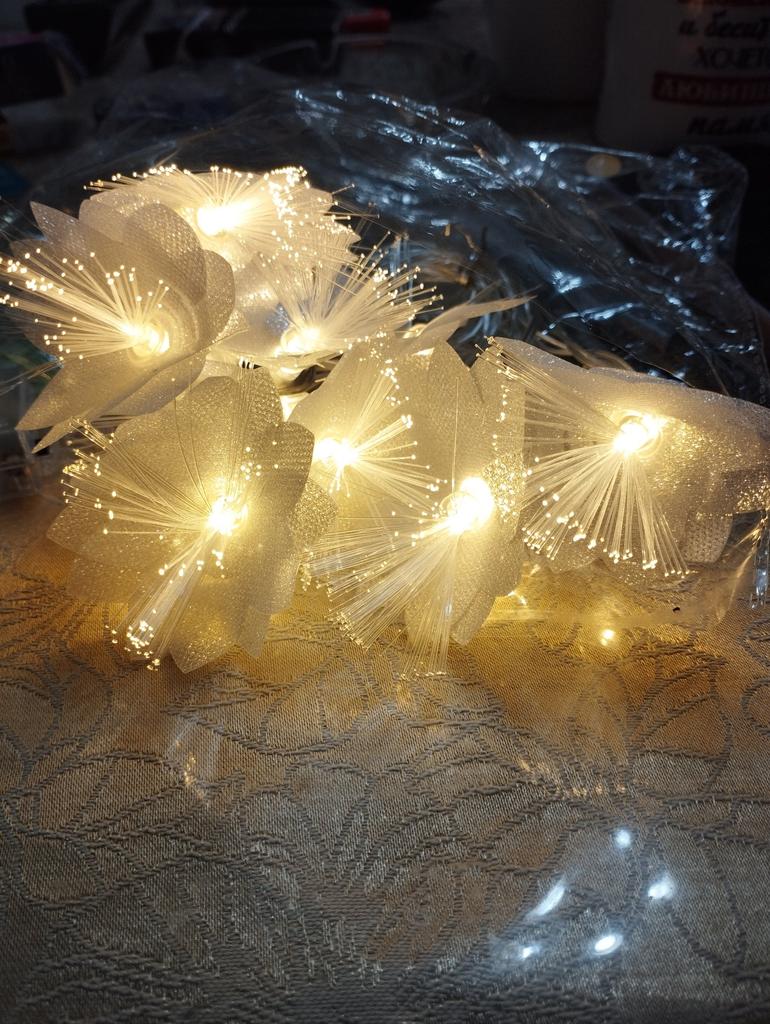 The garland is delicate, beautiful, gives a pleasant lighting, creates coziness. But I remove one star for the damage due to poor packaging. The flowers were badly crumpled and the battery box was broken.