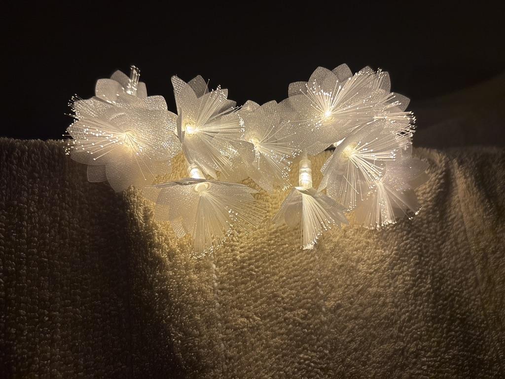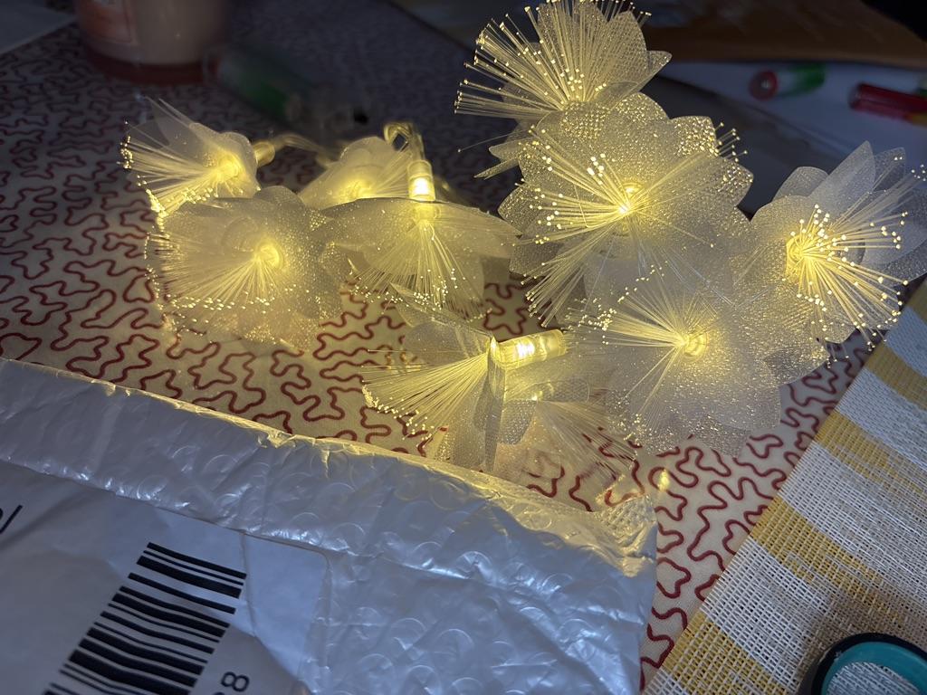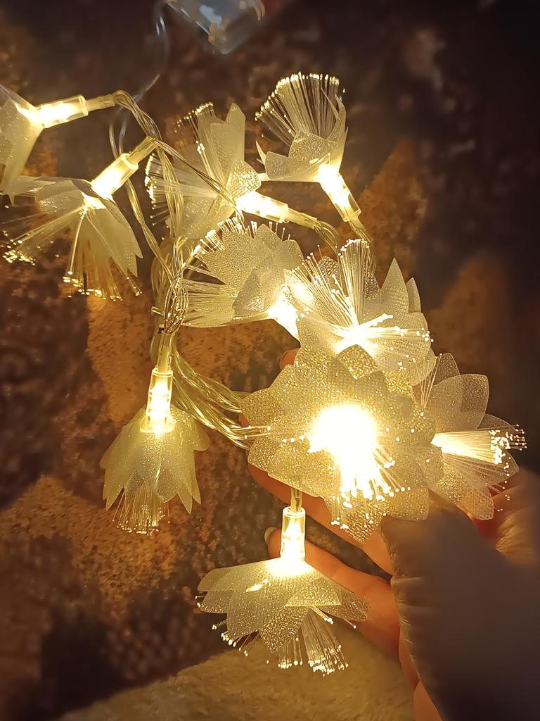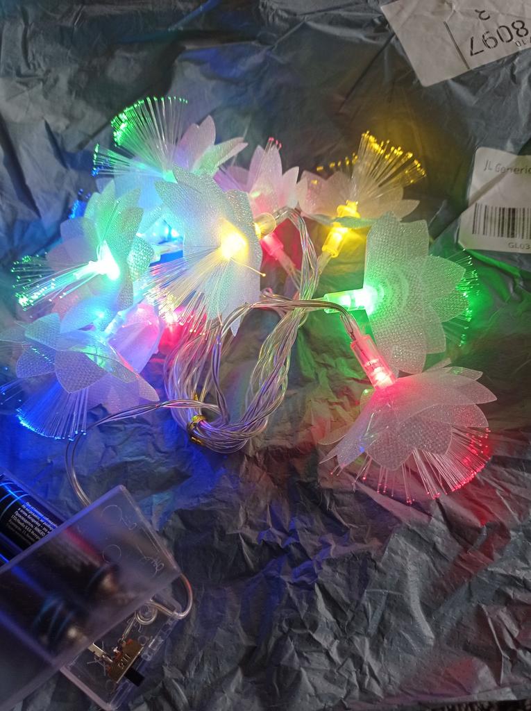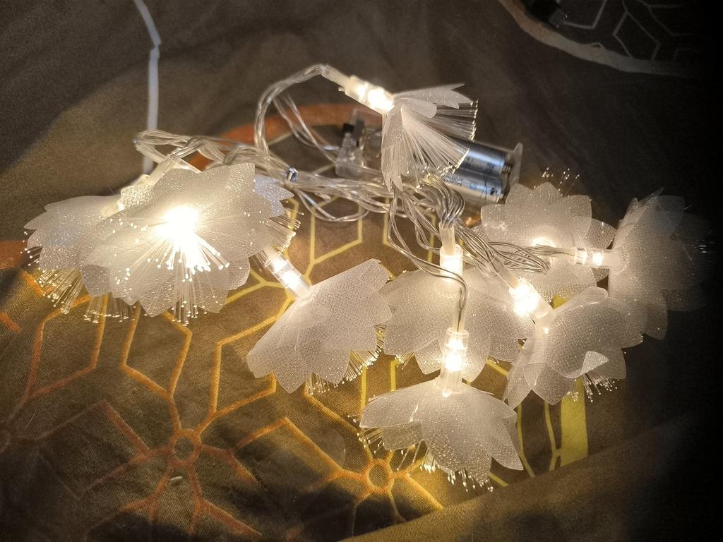 The garland is delicate, beautiful, gives a pleasant lighting, creates coziness. But I remove one star for the damage due to poor packaging. The flowers were badly crumpled and the battery box was broken.