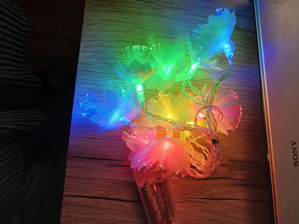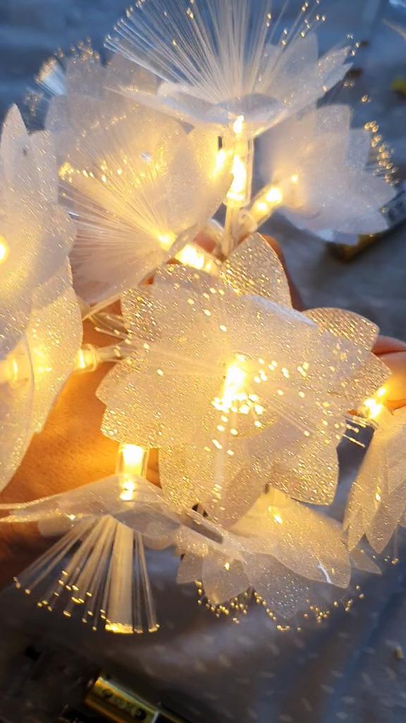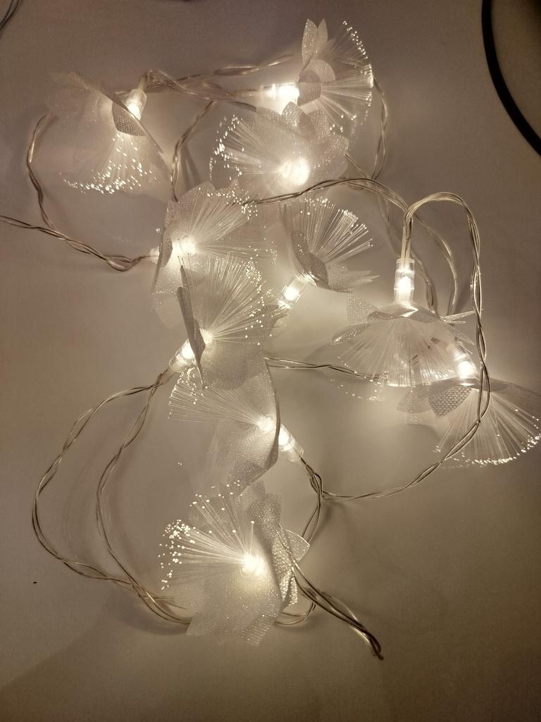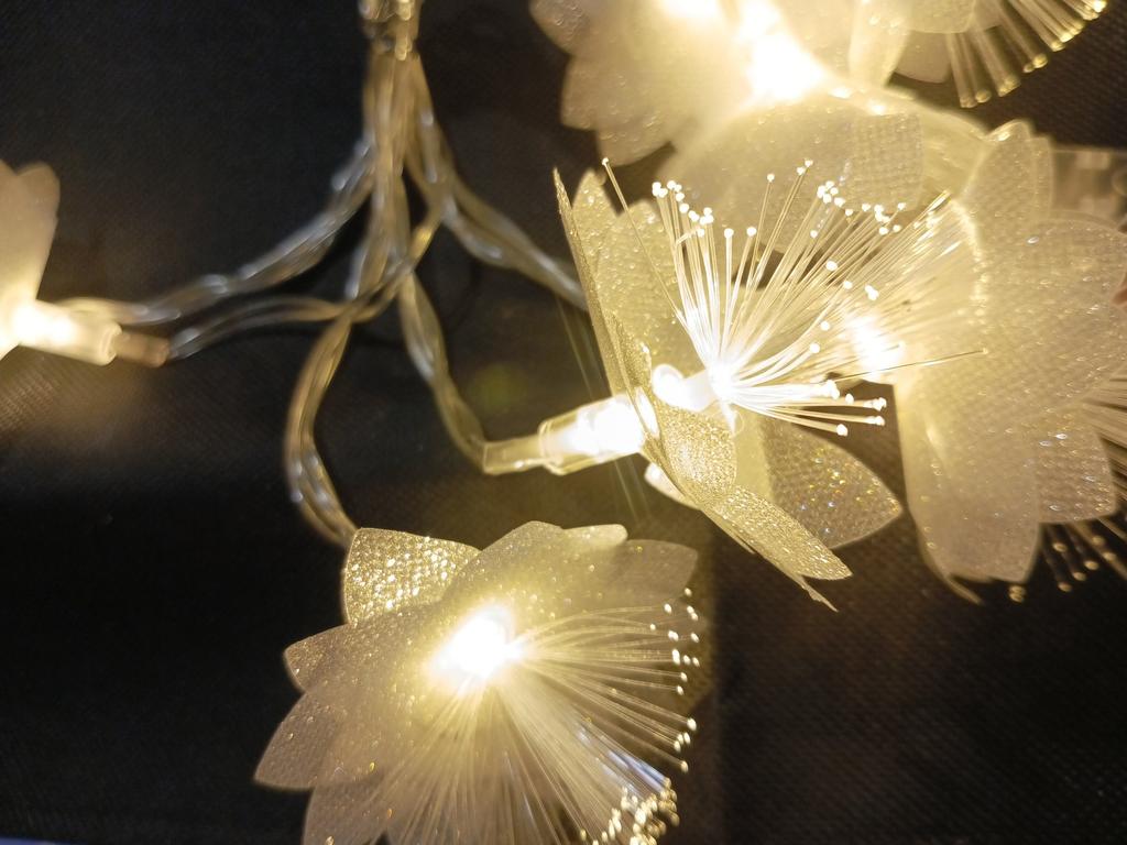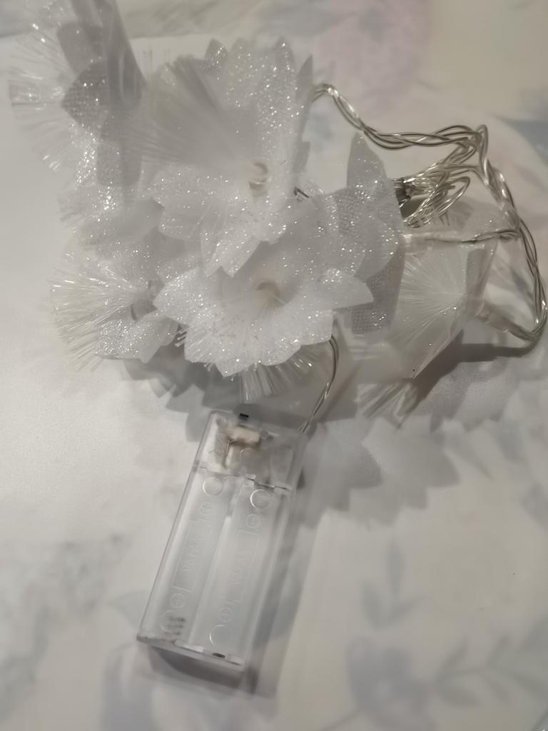 It's a pity that there is no USB connector, it works on batteries, but in general the garland is beautiful, the flowers are sparkling