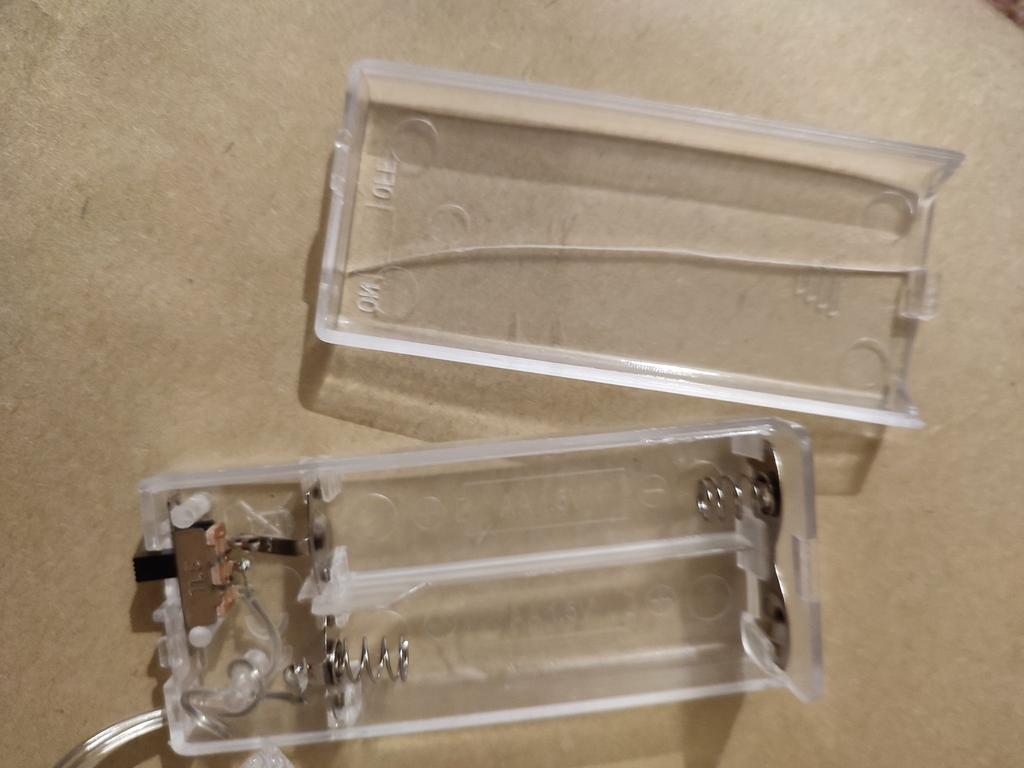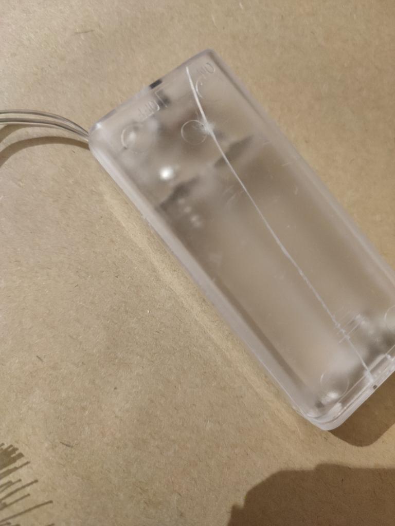 The idea is interesting. It needs to be straightened, steamed, and aligned. Compartment for 2 AA batteries. The color of the glow is indicated on the packaging.