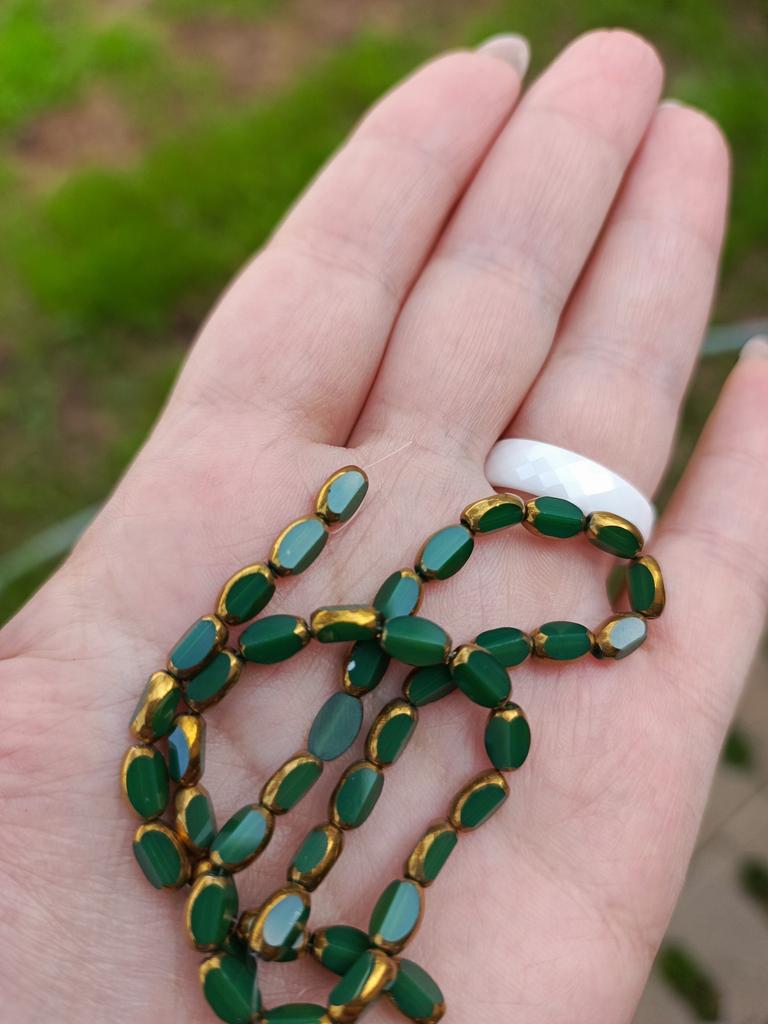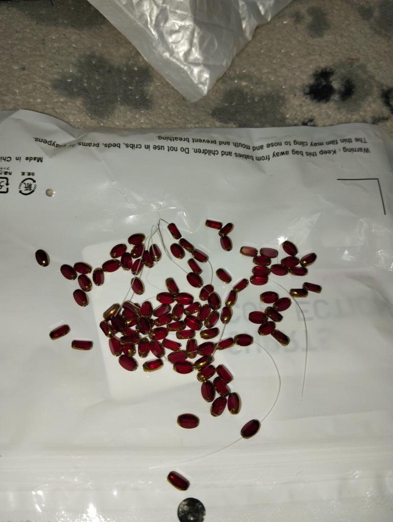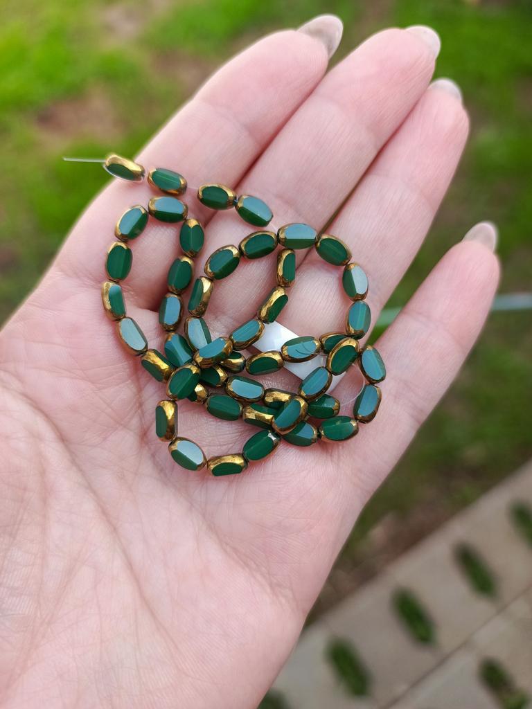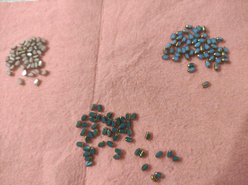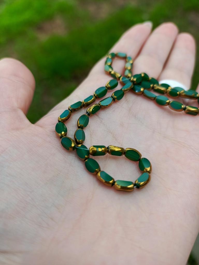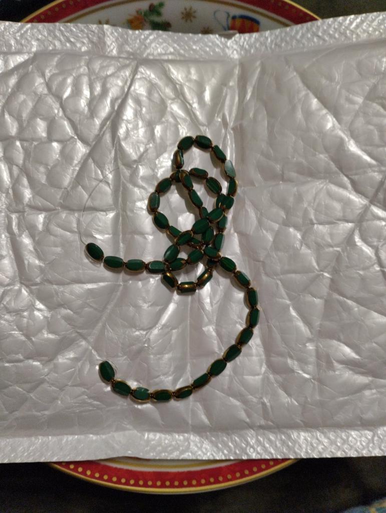 I ordered three threads of different colors. Each one contains defective beads. Green beads are generally discarded and 49 pcs.