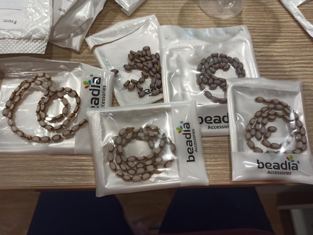 The beads are small and there are few of them. The package took a month and a half to arrive