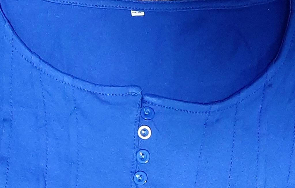 The quality of the sewing and fabric is good, but it is not fitted at all like in the photo, on my 90x70x95 it looks like a sack and the color is dark blue, only if you tuck it into jeans, but I wanted it specifically to wear out.