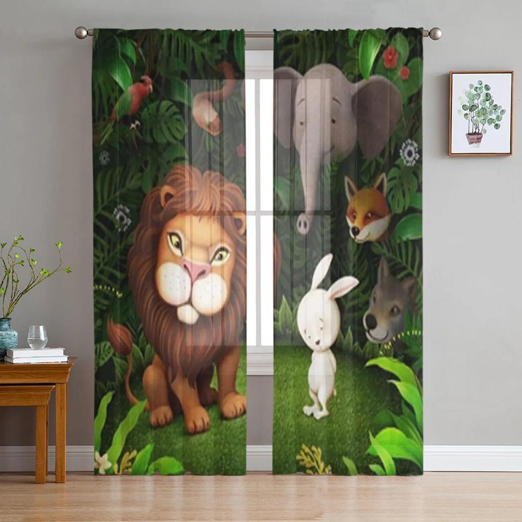 Lion In The Jungle Sheer Window Curtains For Living Room Bedroom Modern Voile Tulle Curtains Fabric Drapes For Kitchen