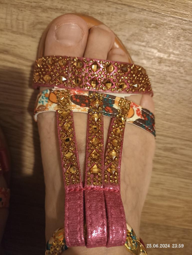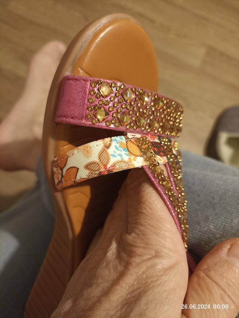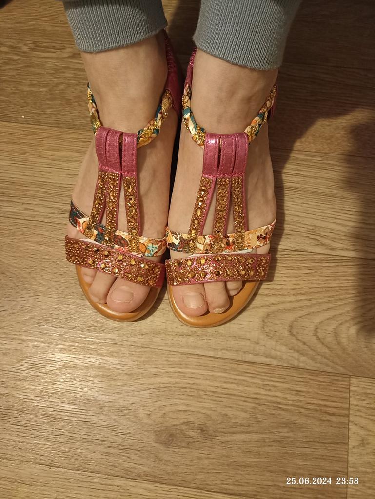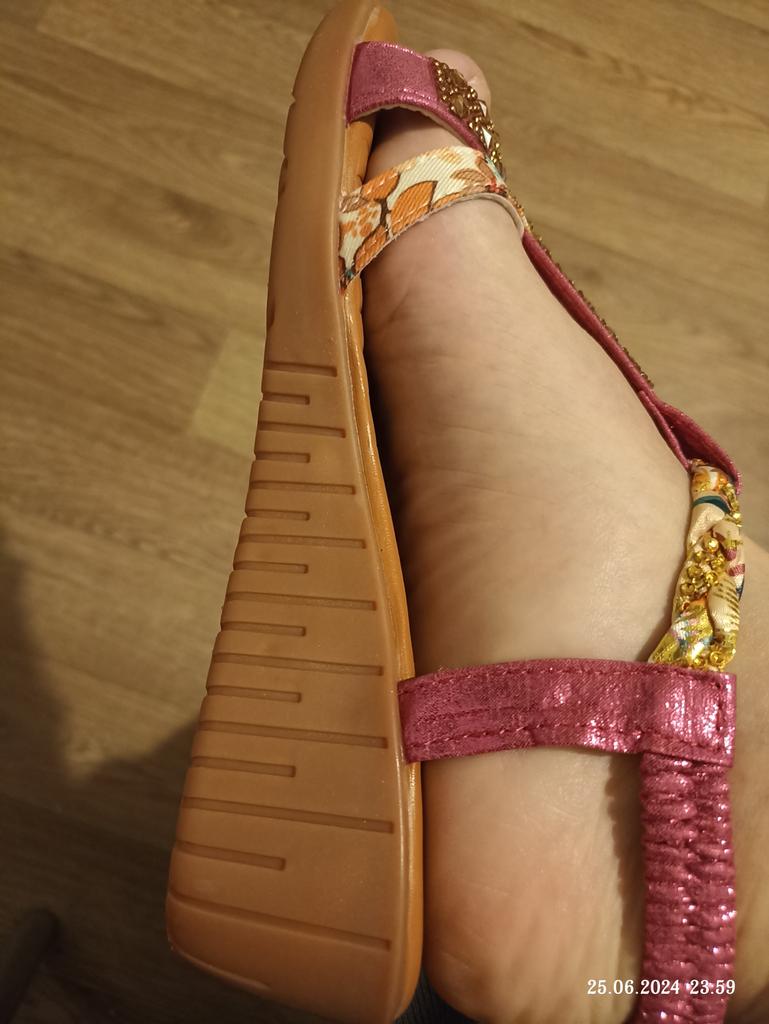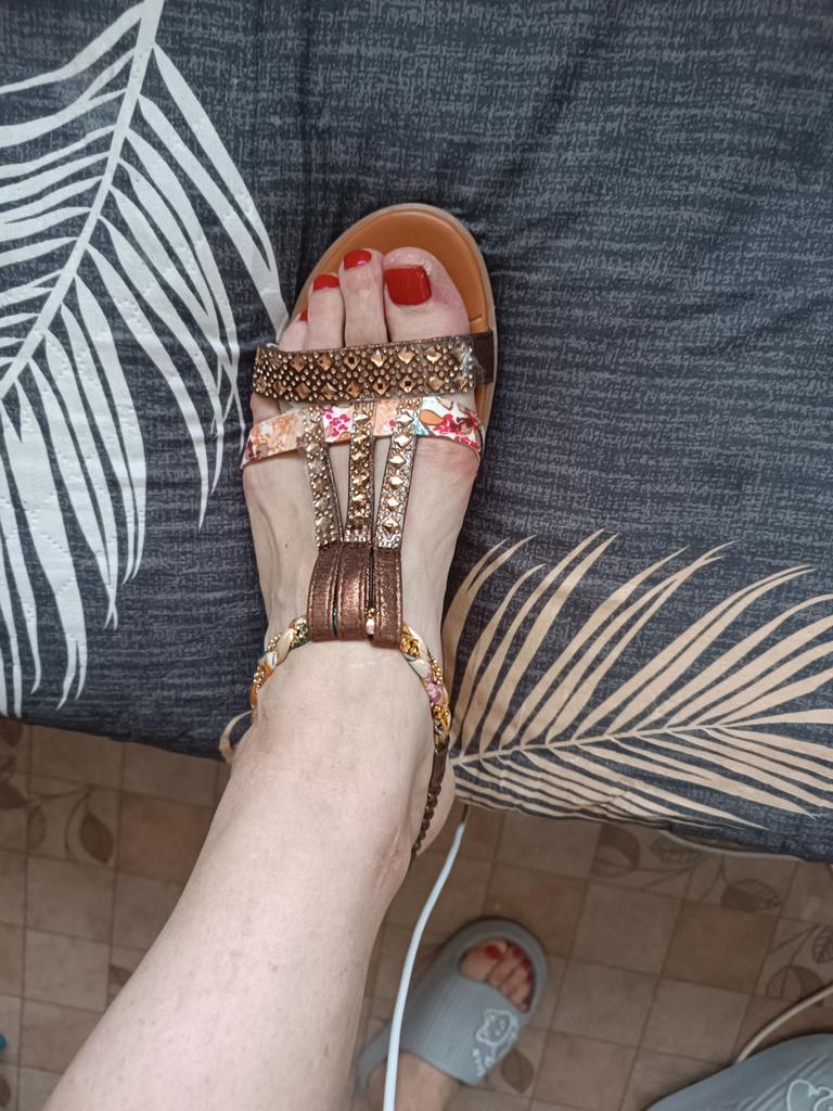 The goods arrived on time, well packed. The sandals are beautiful, correspond to the picture, the size is right, I have 37.5, I ordered 38. I am happy with the goods, I recommend them, they will also suit wide feet.