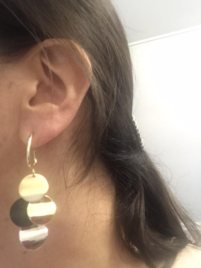 Women's Circular Metal Sheet Earrings New Fashionable and Versatile Temperament Earrings Color Blocking Long Earrings