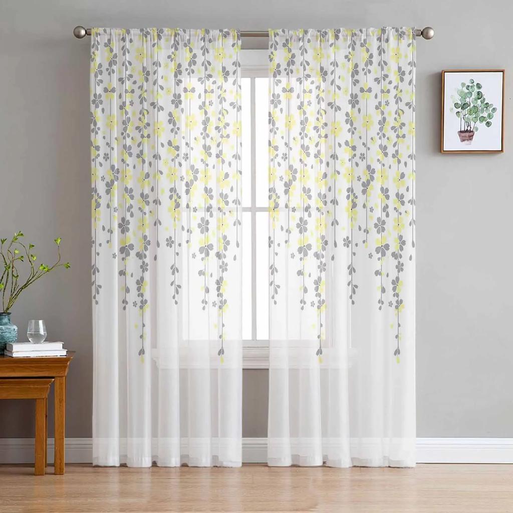 Cherry Blossom Flower Spring Curtain Tulle Decorative Sheer Curtains for Living Room Bedroom Kitchen Hotel Home Window Panels