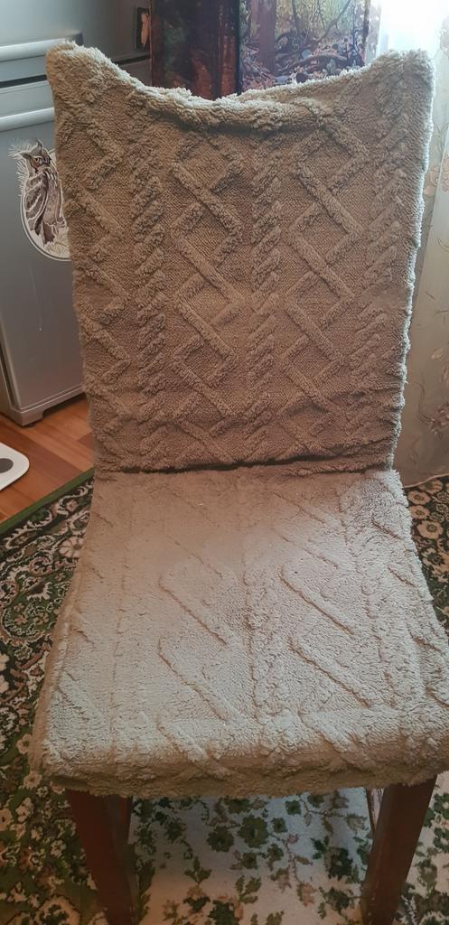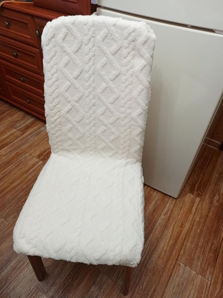 My chair covers fit just right. Beautiful, comfortable, soft, white..