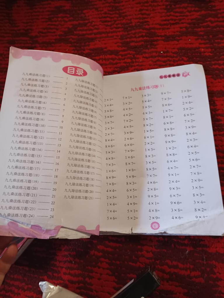 Instead of a multiplication table, a completely crumpled booklet about clocks and Chinese money, a lot of text... In Chinese
