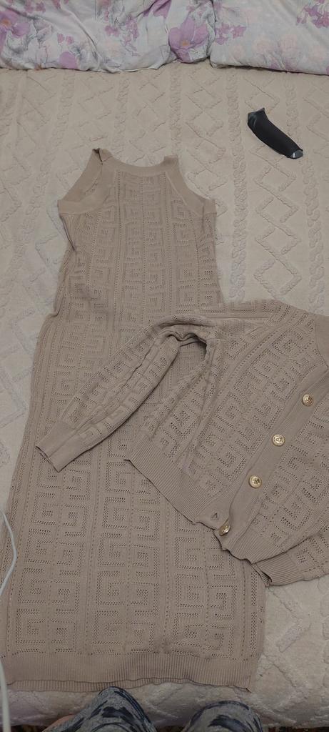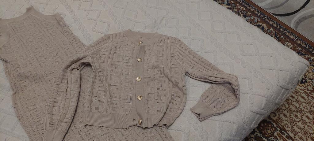 Spring Autumn Brand Designer Runway Outfits Women Knitted Sweater Midi Sheath Dress and Single Breasted Jacket Coat Two Piece Set