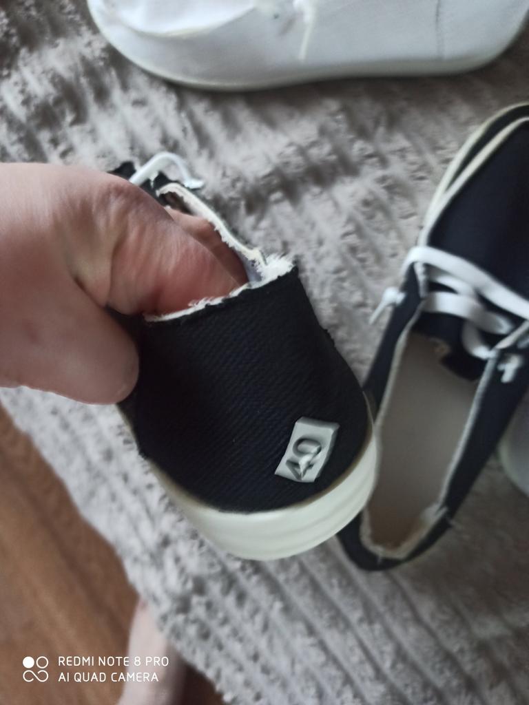 Dissatisfied, not like in the photo, the upper edges are not tucked up, it looks ugly in general. The size is 37.5 in length, I took 39, but the width is too big, the laces are short, there is not enough to tie them. In short, a complete failure with these shoes. Unfortunately. And it is also very unpleasant when they deceive (I am talking about the differences between the photo and real shoes).