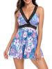 Women Bikini Set Bohemian Sleeveless V-neck Backless Patchwork A-line Dress with Briefs Bathing Suit 2-piece Swimsuit Beachwear