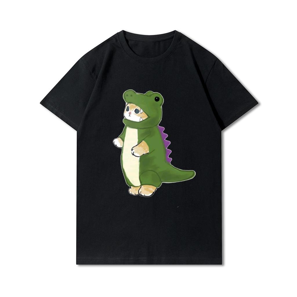 Plus Size Cats Shark Printed Women T Shirts Round Neck Cotton Tops Summer Animal Y2K Fashion 90S Casual Oversize Black Tees