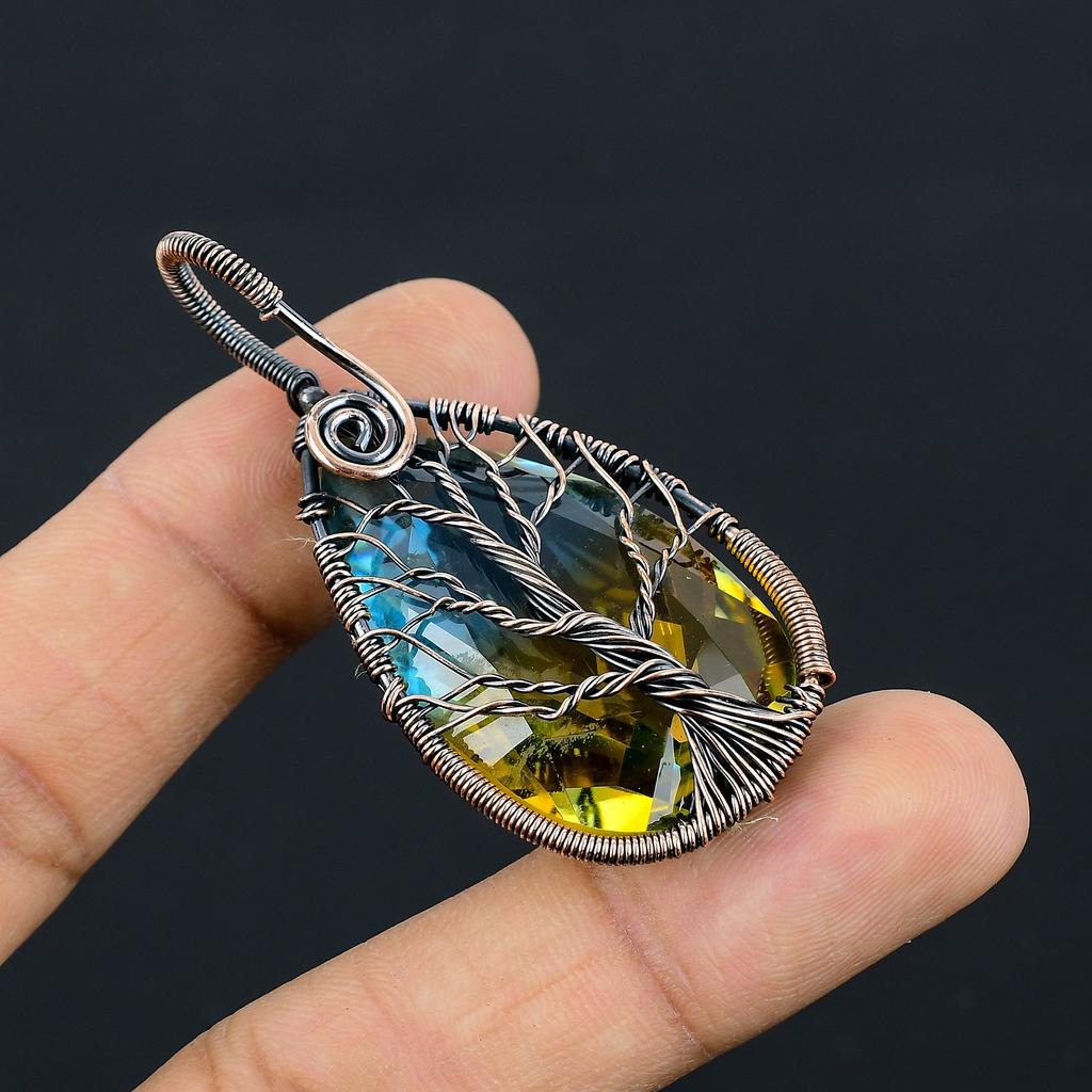 Natural Bi Color Tourmaline Gemstone Copper Wire Wrap Jewely Pendant 2.4" E9J97
