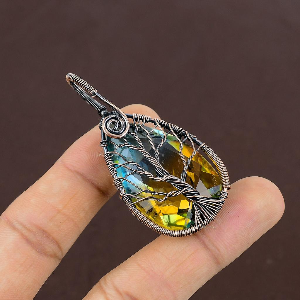 Natural Bi Color Tourmaline Gemstone Copper Wire Wrap Jewely Pendant 2.4" F7L57