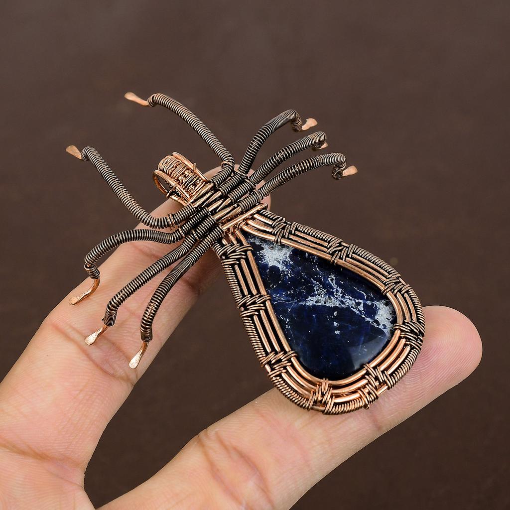 Natural Sodalite Gemstone Handmade Copper Wire Wrap Spider Pendant 2.56" I0J54