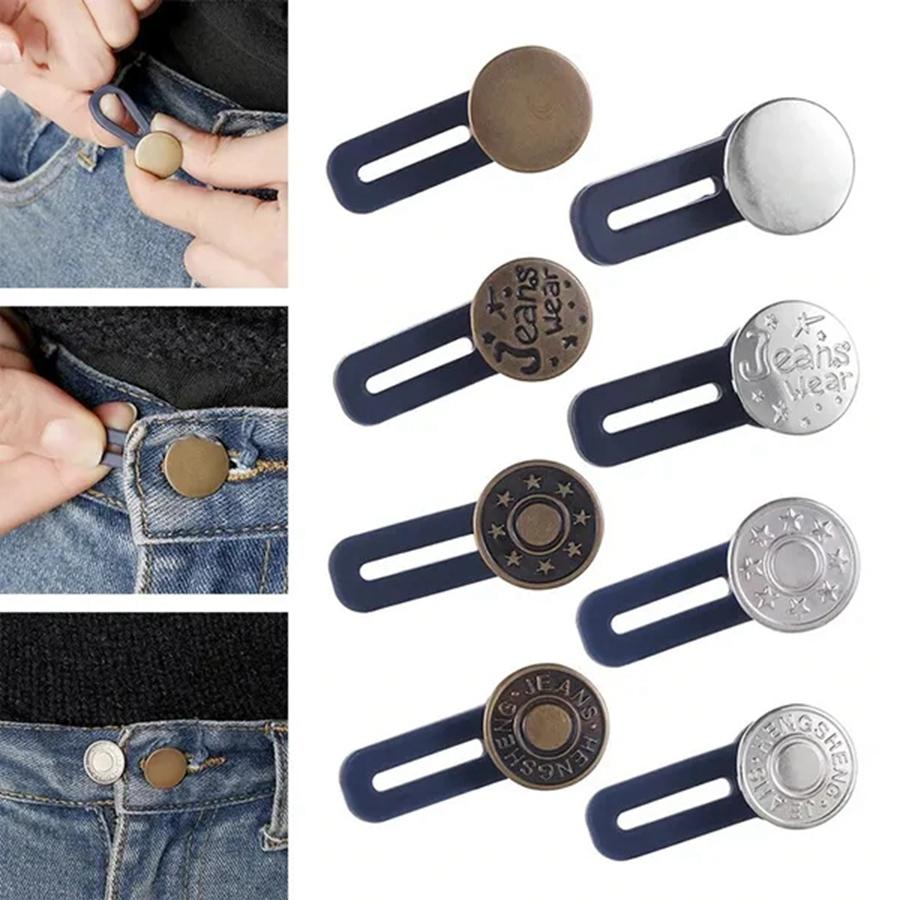5Pcs Metal Button Extender for Pants Jeans Free Sewing Adjustable Retractable Waist Extenders Button Waistband Expander