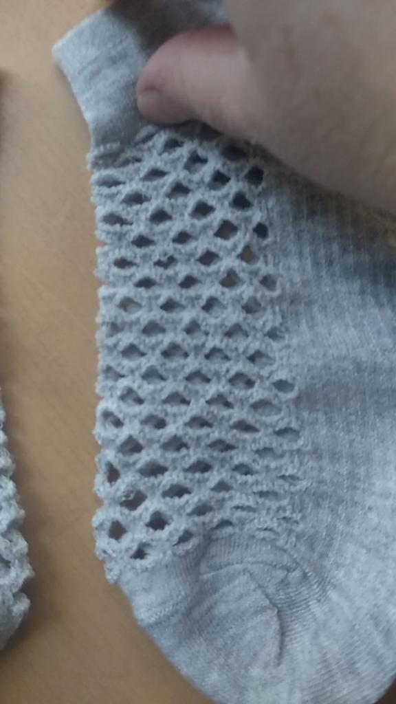 That rare case when the product is better than expected. Thick, with a claim to warmth, although the upper part is mesh. Paradoxically interesting socks)) The cell is a bit large. Personally, they suit me just fine. They will be fine under sneakers or Crocs. I will wear them, I recommend them!