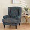 Stretch Print Wing Chair Cover Spandex Elastic Armchair Covers Europe Wingback Relax Sofa Slipcovers with Seat Cushion Cover