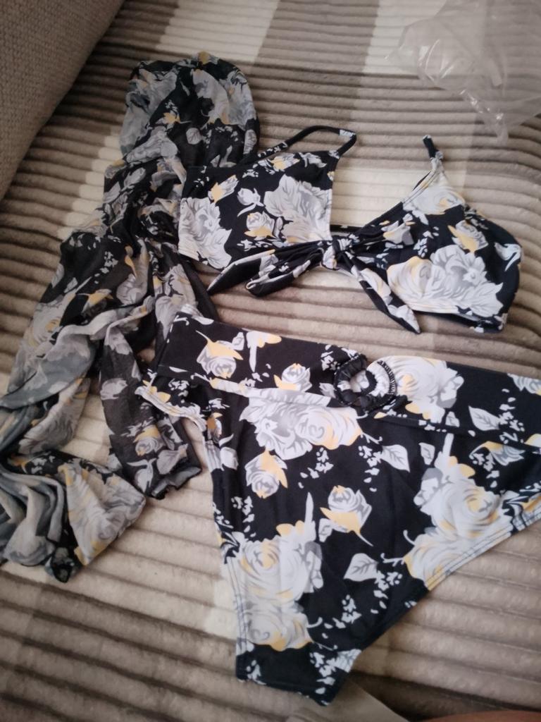 * sexy bikini with jacket * ๐ฅ๐๐ถ๐ฒ๐ณ๐ฒ๐ฟ๐๐ฒ๐ถ๐ Almost 3 weeks ๐ฅ๐๐ถ๐ฒ๐ณ๐ฒ๐ฟ๐๐บ๐ณ๐ฎ๐ป๐ด The delivery includes 1 bikini in matching color and size. It is available in 5 different colors in sizes S to XL. I ordered it in size M in green. I wear size 36 to 38. I weigh 62 kg over 172 cm. Cup size 75D. The bikini fits me like a glove. ๐ฅ๐ค๐๐ฎ๐น๐ถ๐รค๐ The bikini convinced me of the quality. It is opaque and has removable pads for a pleasantly light pusher effect. There is a fake bow at the front of the neckline for decoration. The briefs are cut a little higher (high waist) like a hipster. There is a ring on the front of the stomach that looks like a belt. The straps of the top can be adjusted. The included jacket matches the color of the bikini and can be quickly thrown on when you want to move around on the beach. For material composition : 82% Polyester 18% Elastane ๐ฅ๐๐ฎ๐๐ถ๐ Mega beautiful bikini with removable pads that creates a beautiful cleavage. The included jacket conceals problem areas on the hips and stomach. The pants are cut a little wider, so that these problem areas on the hips and bottom are also concealed. You can order the bikini in its original size. It fits true to size.
